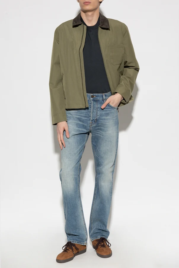 Wyraźnie tradycyjny materiał denimowy o średniej grubości, w 100% wykonany z bawełny, gwarantuje szlachetną sztywność i nieprzemijający wygląd, zachowując pełną formę bez domieszek elastycznych włókien.