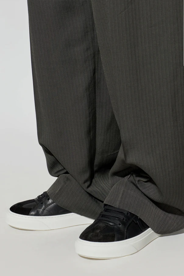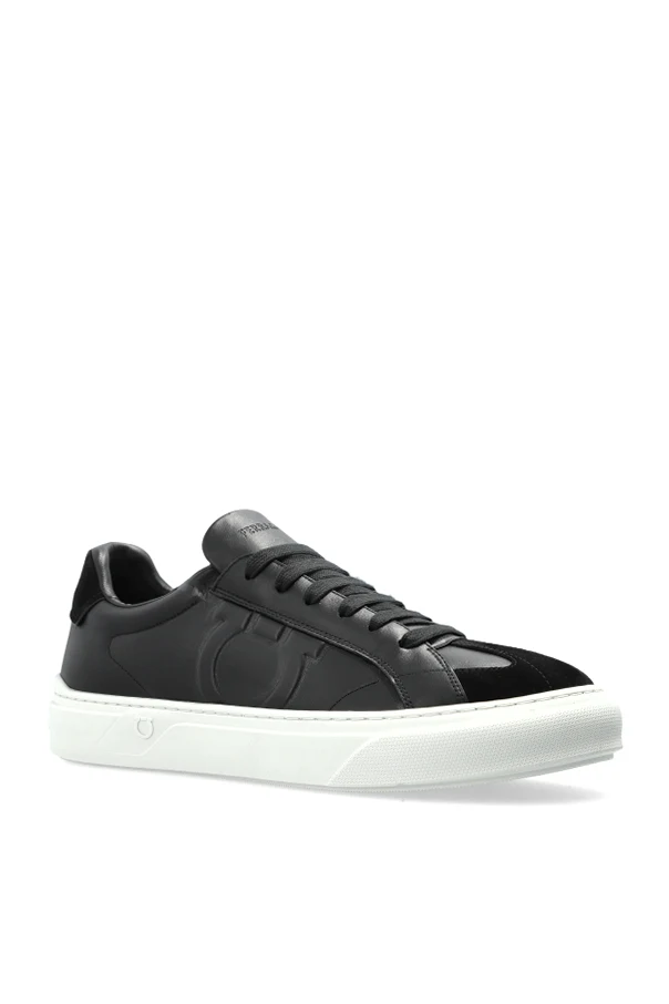 Zachwycające w swojej prostocie buty sportowe Thor marki FERRAGAMO to wyznacznik wyrafinowanej elegancji. Klasyczna, opływowa forma typu low-top urzeka minimalistyczną sylwetką z zaokrąglonym noskiem, podkreślającą ponadczasowość projektu. Dominujący, czarny kolor cholewki z wysokogatunkowej skóry licowej, uzupełniony matowym wykończeniem oraz fragmentem delikatnego zamszu na pięcie, buduje niezwykle szlachetny charakter butów.