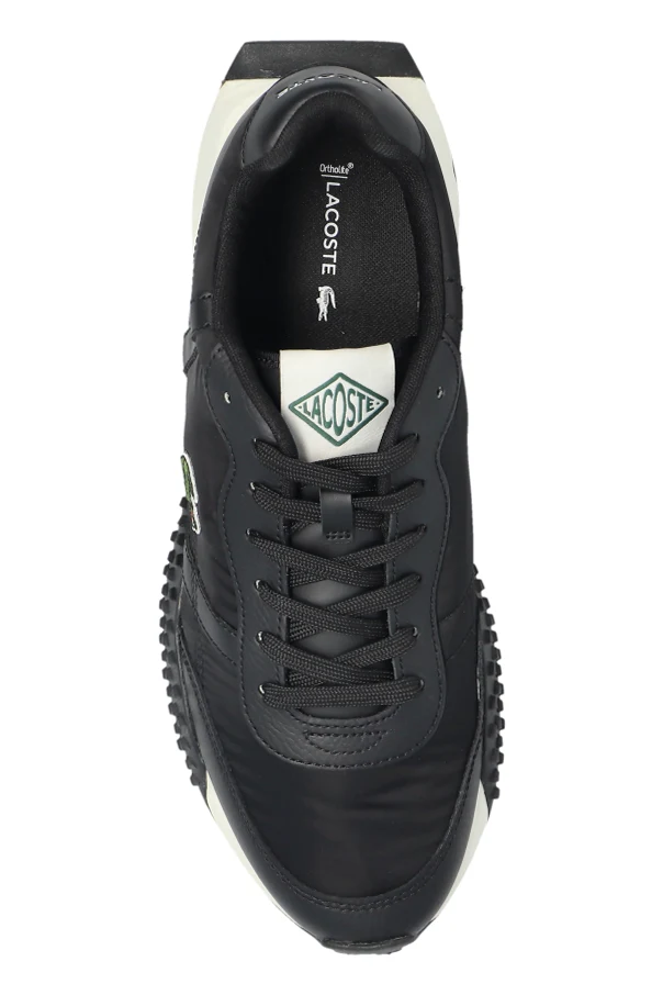 Cholewka butów została wykonana z połączenia gładkiego materiału syntetycznego oraz wyselekcjonowanych paneli skóropodobnych, które harmonijnie współgrają z matową, nieznacznie błyszczącą fakturą. Dopełnieniem są charakterystyczne przeszycia, kontrastująca biała podeszwa oraz wyraźnie widoczne logo marki Lacoste – znanego, francuskiego projektanta z wieloletnią tradycją.