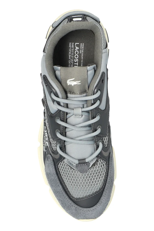 Motywy charakterystyczne dla marki, takie jak legendarne logo krokodyla na pięcie i języku, jak również detaliczny napis „LACOSTE”, budują autentyczność i rozpoznawalność produktu. Rzeźbiona, kontrastowa podeszwa w tonacji jasnego beżu/kości słoniowej oraz subtelne, błyszczące akcenty podkreślają futurystyczny charakter butów. Doskonała kompozycja materiałowa zapewnia wygodę i trwałość, czyniąc ten model wyjątkowym wyborem na każdy dzień.