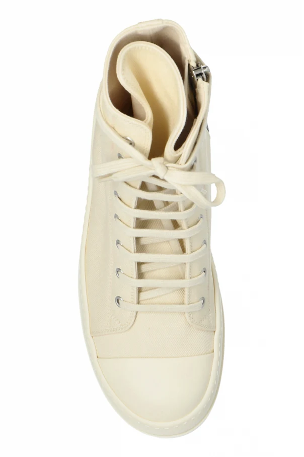 Buty sportowe z suwakiem marki Rick Owens DRKSHDW to synonim wyrafinowania w sportowej elegancji. Ich niezwykle anatomicznie wyprofilowana sylwetka typu high-top subtelnie otula kostkę, zapewniając wygodę nawet najbardziej wymagającym koneserom mody. Całość utrzymana jest w jednolitym, kremowym kolorze, który emanuje ponadczasowym szykiem.