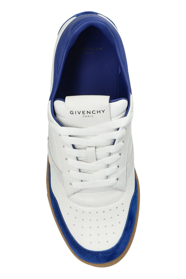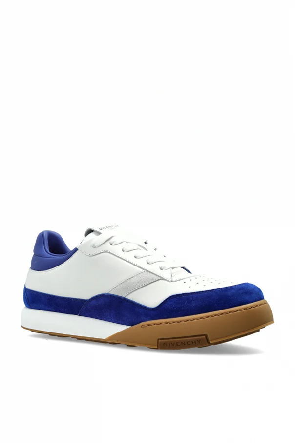 Buty sportowe „Yard” marki Givenchy stanowią wyrafinowaną interpretację klasycznych sneakersów typu low-top, dedykowanych mężczyznom ceniącym połączenie nowoczesnej elegancji i sportowego wyrazu. Ich szlachetny multikolor – biel, mocny kobalt, klasyczny brązowy odcień podeszwy, oraz subtelny granatowy akcent na pięcie i języku – przyciąga uwagę harmonijnym zestawieniem barw.
