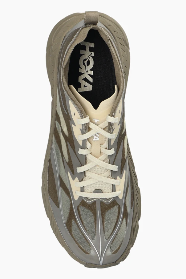 Podeszwa z trwałej gumy oraz starannie osadzone akcenty z logo "HOKA" na języku i wkładce dopełniają całości prestiżowego projektu. Każdy detal świadczy o niezwykłej staranności wykonania oraz dbałości o komfort użytkownika.