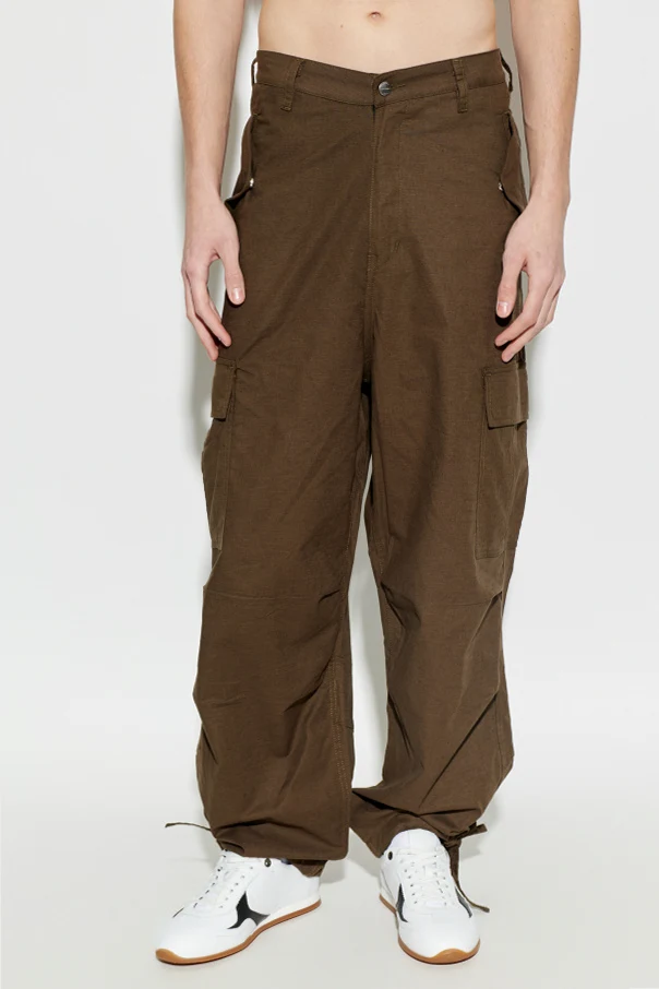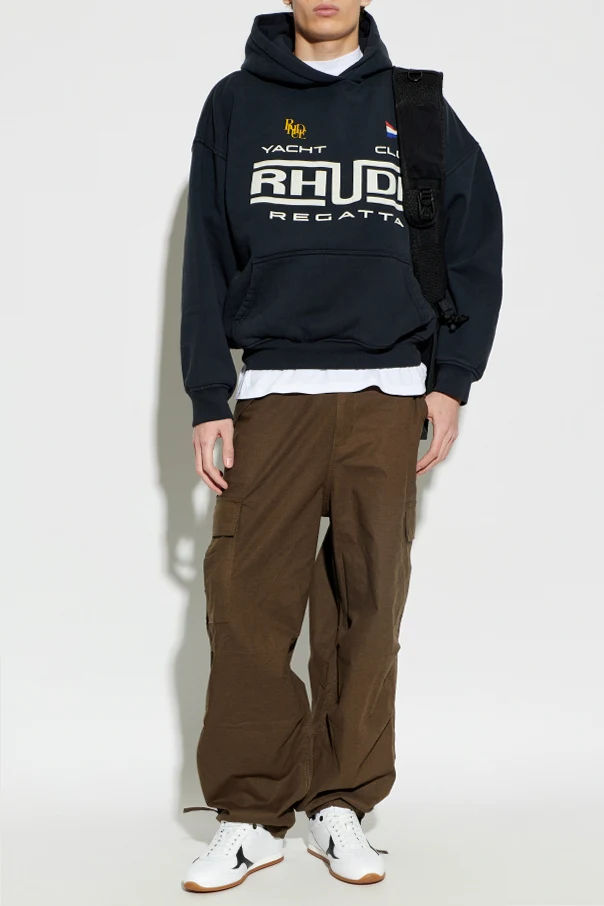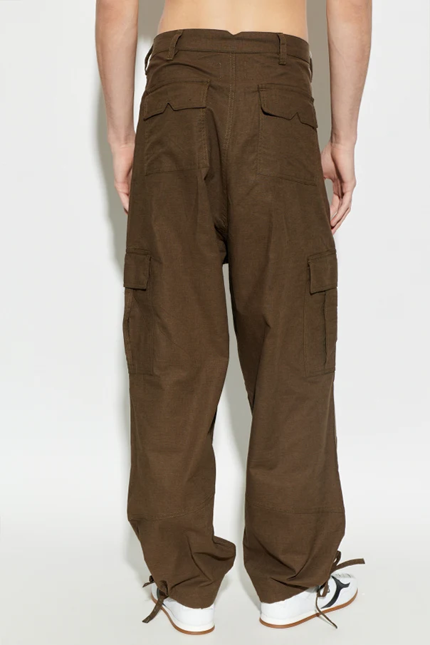 Spodnie typu cargo marki Rhude urzekają połączeniem wyrafinowanej estetyki z funkcjonalnością inspirowaną codzienną aktywnością. Brązowy odcień doskonale koresponduje z ponadczasowym charakterem, podkreślając ich uniwersalność oraz klasę.