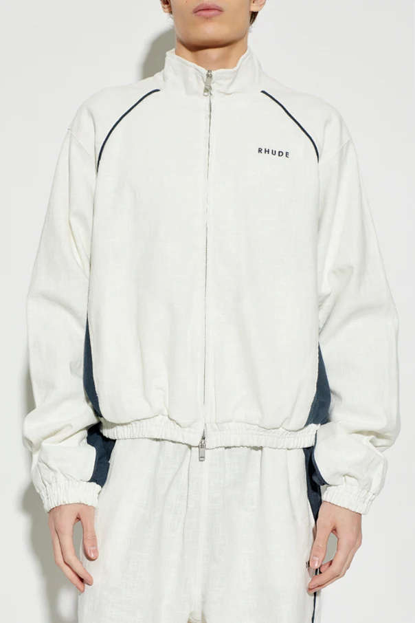 Kurtka została uszyta z wysokogatunkowego lnu o naturalnej, matowej fakturze, z satynowo miękką warstwą wewnętrzną z lyocellu, gwarantującą komfort użytkowania. Wysoki kołnierz (stójka) oraz zamek błyskawiczny na całej długości podkreślają nowoczesny charakter produktu. Subtelnie wyhaftowane logo „RHUDE” na lewej piersi dopełnia całości, stanowiąc gwarancję oryginalności. Całość utrzymana jest w kolorze białym , co potęguje jej świeżość i ponadczasowy wdzięk.