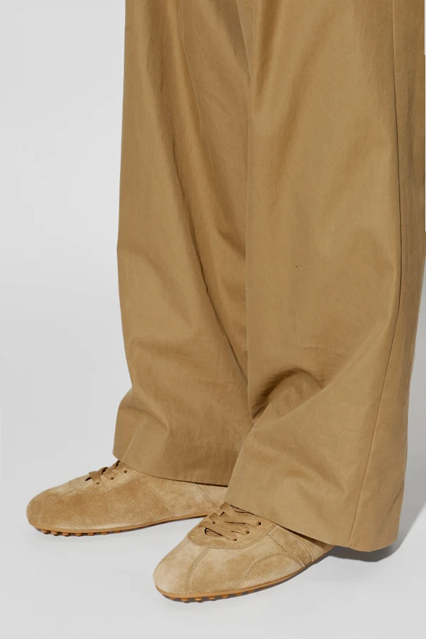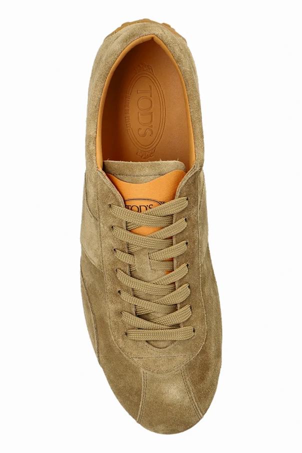 Zamszowe buty sportowe T-Marathon marki Tod’s to esencja wyrafinowanego stylu i ponadczasowej elegancji. Ich smukła, lekko zaokrąglona linia zachwyca subtelnością, a klasyczny nisko osadzony profil podkreśla minimalistyczny charakter. Harmonijna bryła oraz jednolity brązowy odcień tworzą wyjątkowo szlachetną całość, podkreśloną certyfikowanymi przeszyciami i panelem z miękkiego, najwyższej próby zamszu.