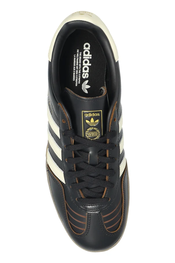 Gładka oraz subtelnie połyskująca cholewka wykonana została z wysokogatunkowej skóry w dominującym, głębokim kolorze czarnym . Wyraziste, kremowe pasy po bokach i tylny fragment w jasnej tonacji nadają modelowi wyjątkowy, rozpoznawalny charakter. Dopełnieniem całości są złociste napisy „GAZELLE”, będące symbolem autentyczności marki Adidas Originals.