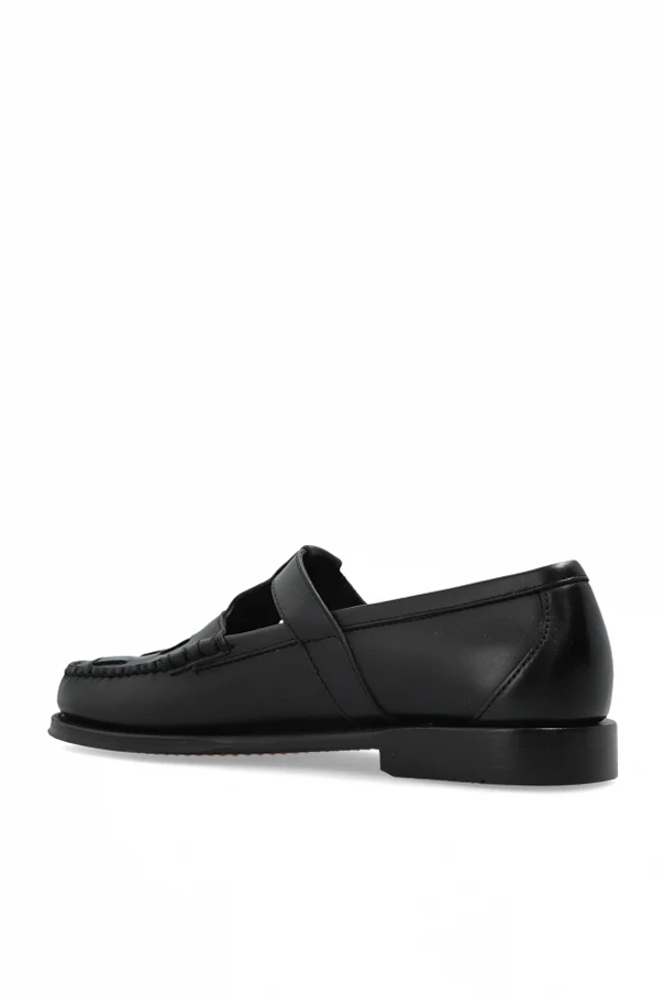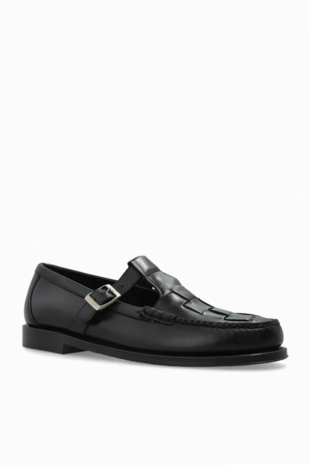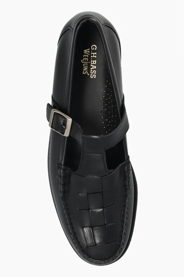 Przód buta zachwyca mistrzowsko przeplatanymi, szerokimi paskami skóry, nawiązującymi do stylu fisherman, a centralnie umieszczony pasek ze srebrną metalową klamrą stanowi zarówno element dekoracyjny, jak i funkcjonalny. Każdy detal — od gładkiej, błyszczącej skóry licowej w kolorze czarnym , przez złote logo „G.H. BASS WEEJUNS” wewnątrz obuwia, po precyzyjne szwy — świadczy o wyjątkowym charakterze projektu sygnowanego przez G.H. Bass & Co.
