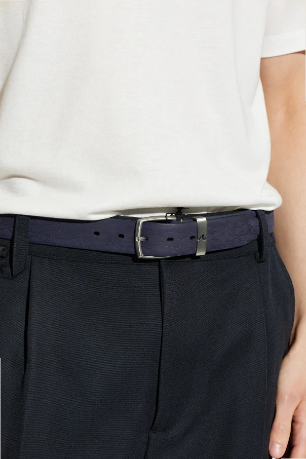 Pasek wykonany z wysokogatunkowej skóry naturalnej cechuje się idealnym wyważeniem pomiędzy ponadczasowym wzornictwem a artystycznym wykończeniem – wzdłuż całej długości widoczne są misternie tłoczone motywy roślinne, nadające mu niepowtarzalnego charakteru. Klasyczna, srebrna klamra z delikatnym połyskiem, ozdobiona metalowym, grawerowanym detalem, stanowi rozpoznawalny motyw projektanta.