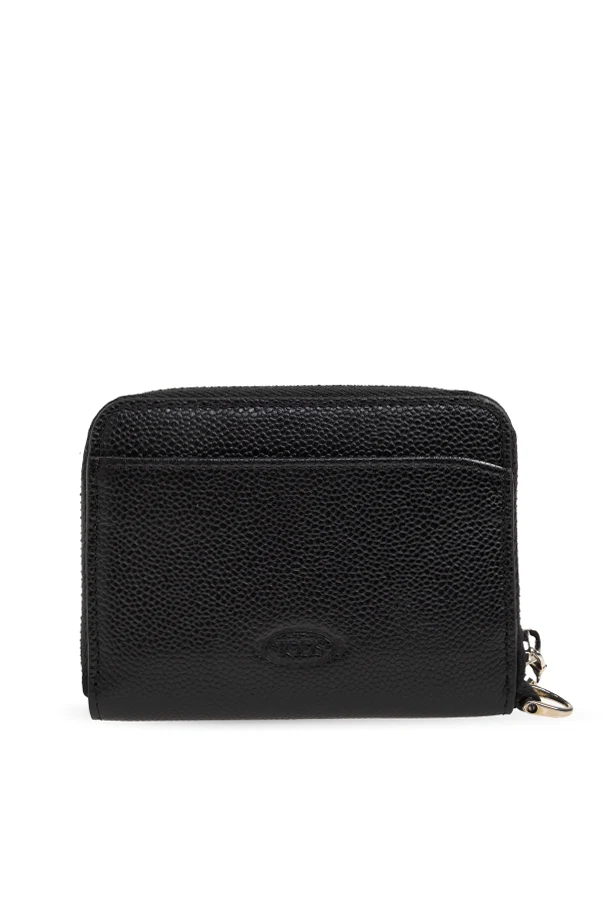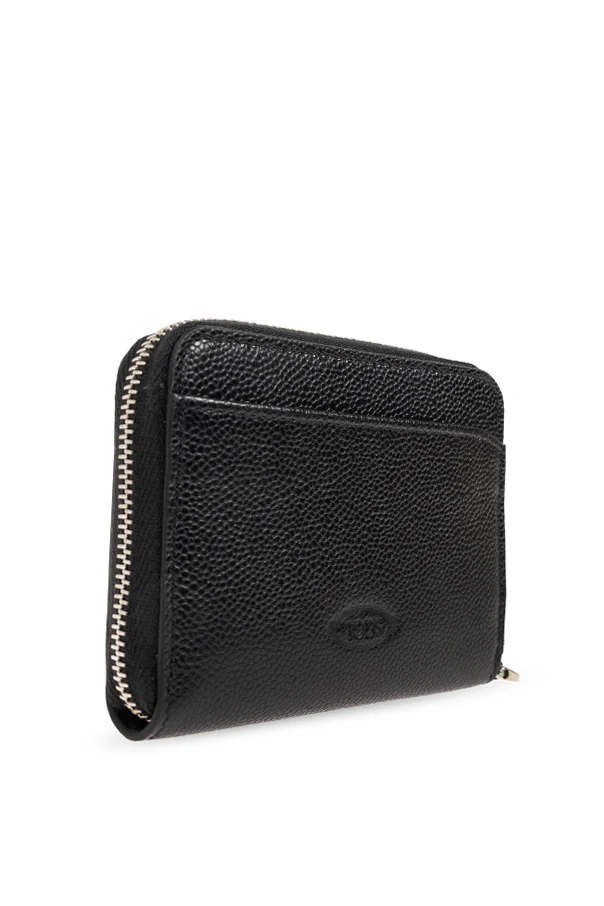Skórzany portfel na pasku marki Tod’s to wyrafinowane dopełnienie stylu dla konesera nowoczesnej elegancji. Produkt olśniewa klasyczną formą – prostokątny kształt z delikatnie zaokrąglonymi narożnikami subtelnie podkreśla kompaktowość i poręczność. Dominujący czarny kolor podkreśla ponadczasowy charakter akcesorium, eksponując naturalną, ziarnistą fakturę skóry najwyższej jakości.