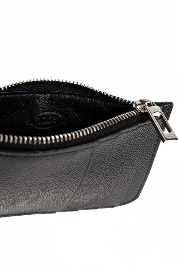 Skórzane etui na kartę marki Tod’s to kunsztowny przykład elegancji i mistrzowskiego rzemiosła. Wykonane z wysokogatunkowej, czarnej skóry naturalnej o wyrafinowanej, lekko ziarnistej fakturze, prezentuje minimalistyczny styl, podkreślony precyzyjnymi przeszyciami i smukłym, prostokątnym kształtem.