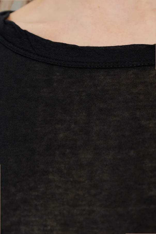 Rękawy są długie i mocno przylegające, dekolt zaś klasyczny i okrągły, pozwalający zachować pełną elegancję. Wykonana z najwyższej jakości bawełny o cienkiej, lekko prześwitującej strukturze, sukienka zapewnia delikatność dotyku oraz wyjątkową wygodę noszenia. Głęboka czerń stanowi wyraziste tło dla mistrzowsko dopracowanych detali konstrukcyjnych, pozbawionych zbędnych ozdób.