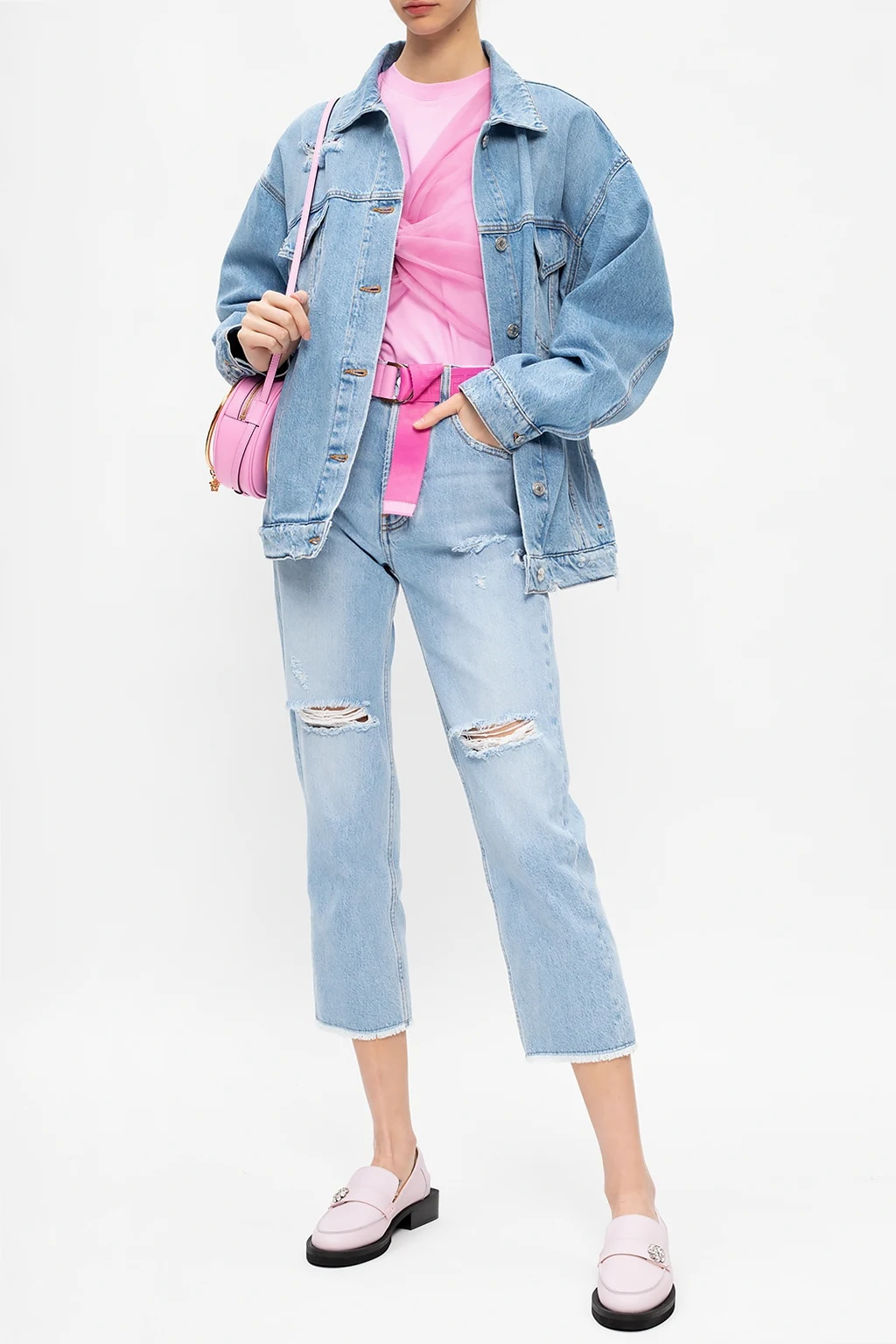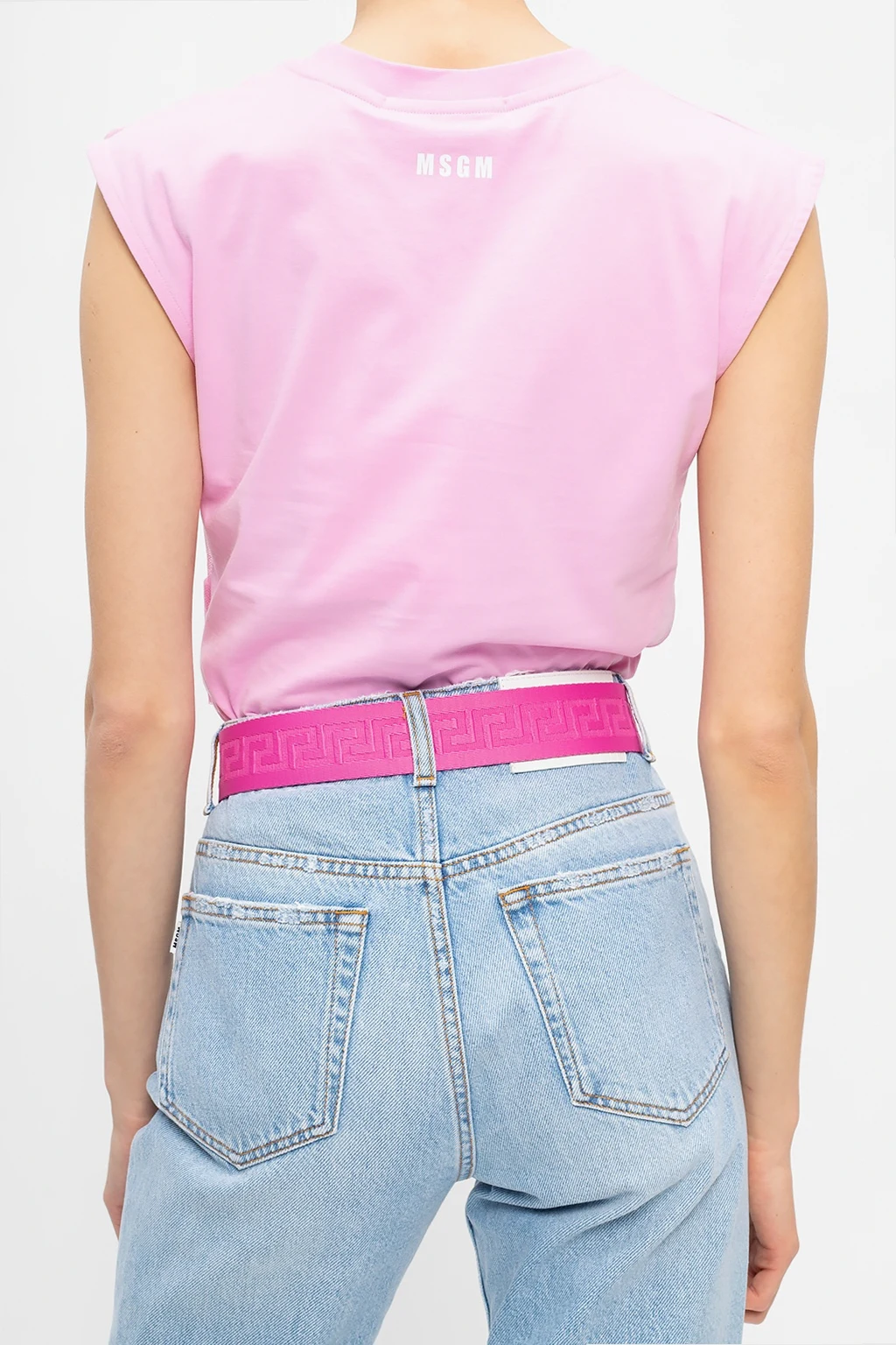 Różowy, bawełniany top MSGM. Ozdobiony dekoracyjną, tiulową wstawką. Okrągły dekolt wykończony ściągaczem.