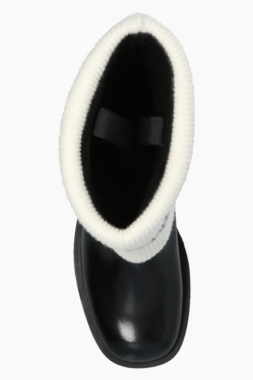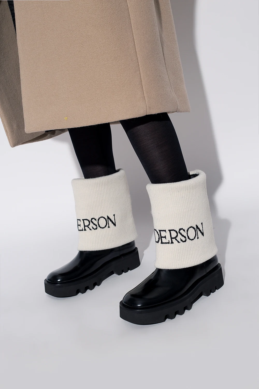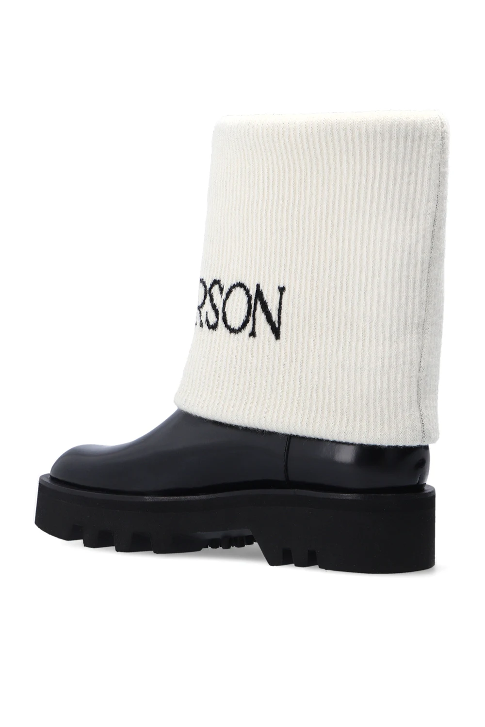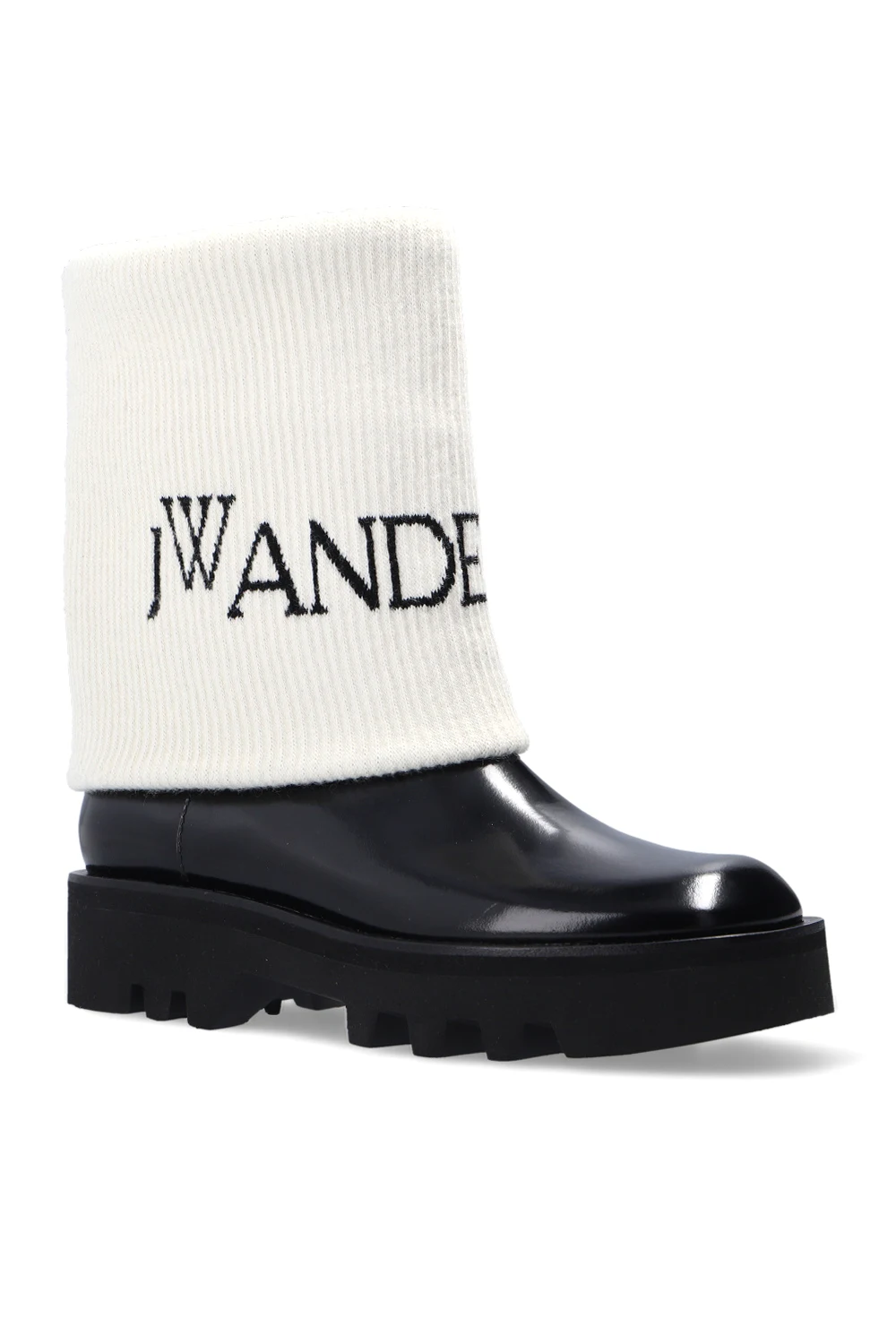 Czarne buty JW Anderson. Wykonane ze skóry. Wykończone zawijanym ściągaczem. Ozdobione wyszytym logo w kolorze czarnym. Czarna, gumowa podeszwa.