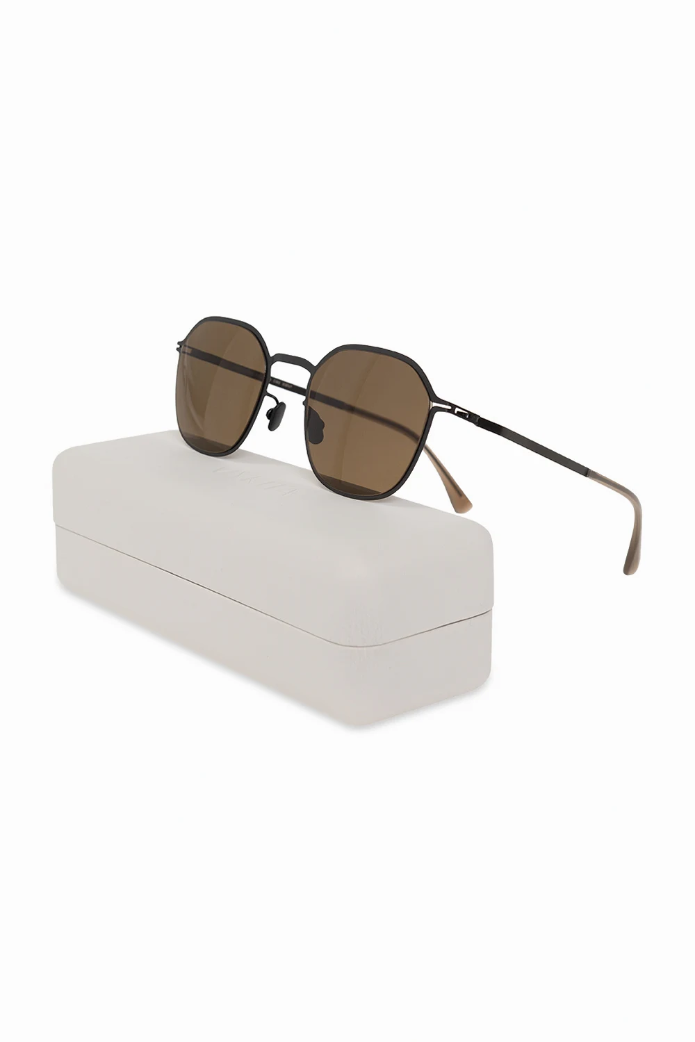 Czarne okulary przeciwsłoneczne, model ‘Felix’ Mykita, kolekcja ‘MYKITA LITE ACETATE’. Wykonane z lekkiej stali nierdzewnej. Brązowe soczewki ‘Raw Brown Solid’. Wykonane ręcznie w Berlinie.