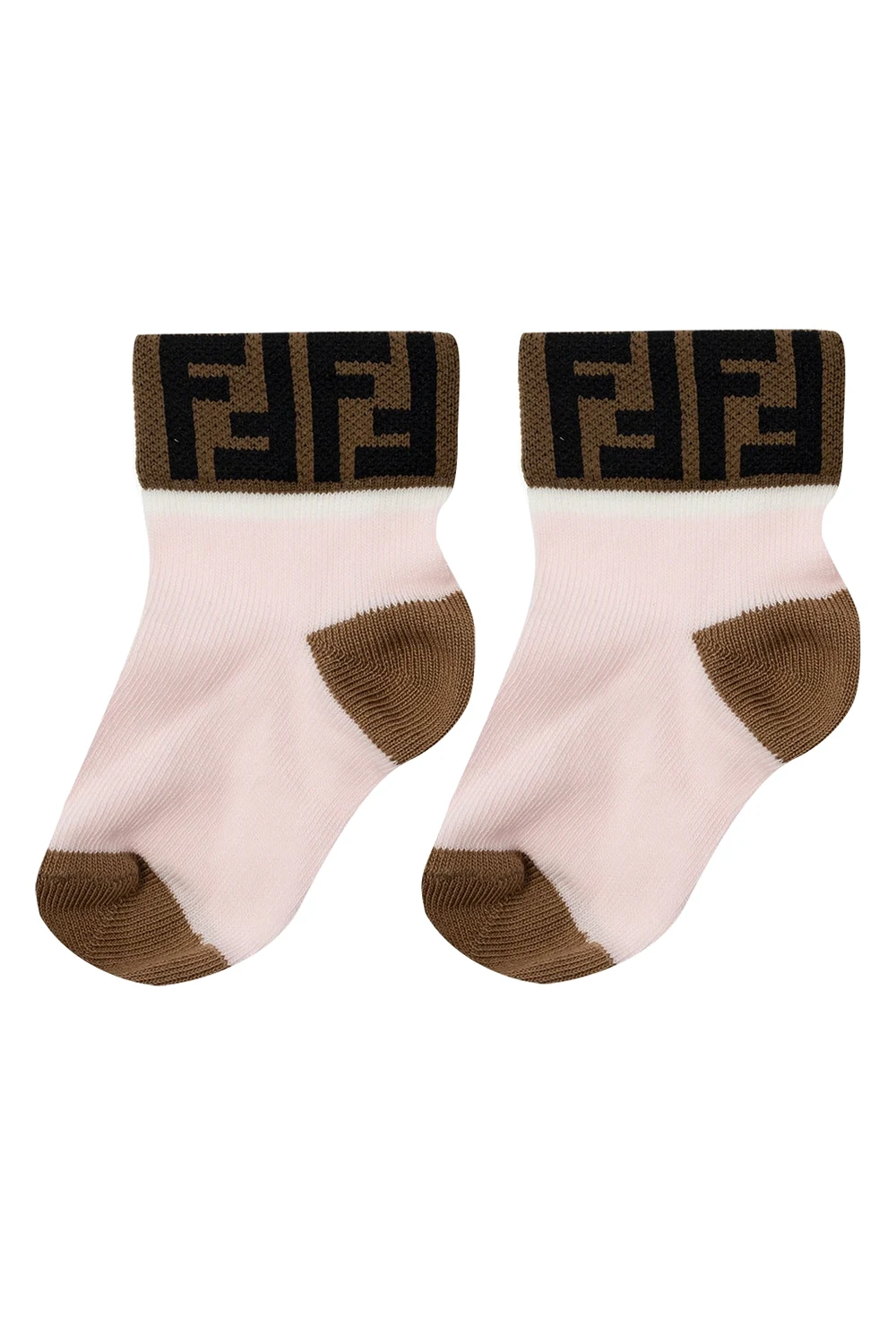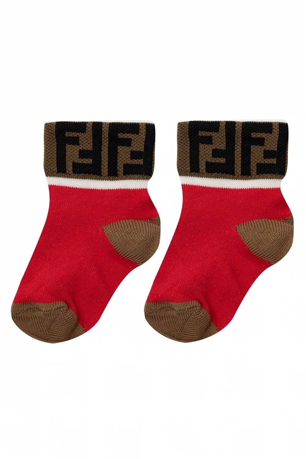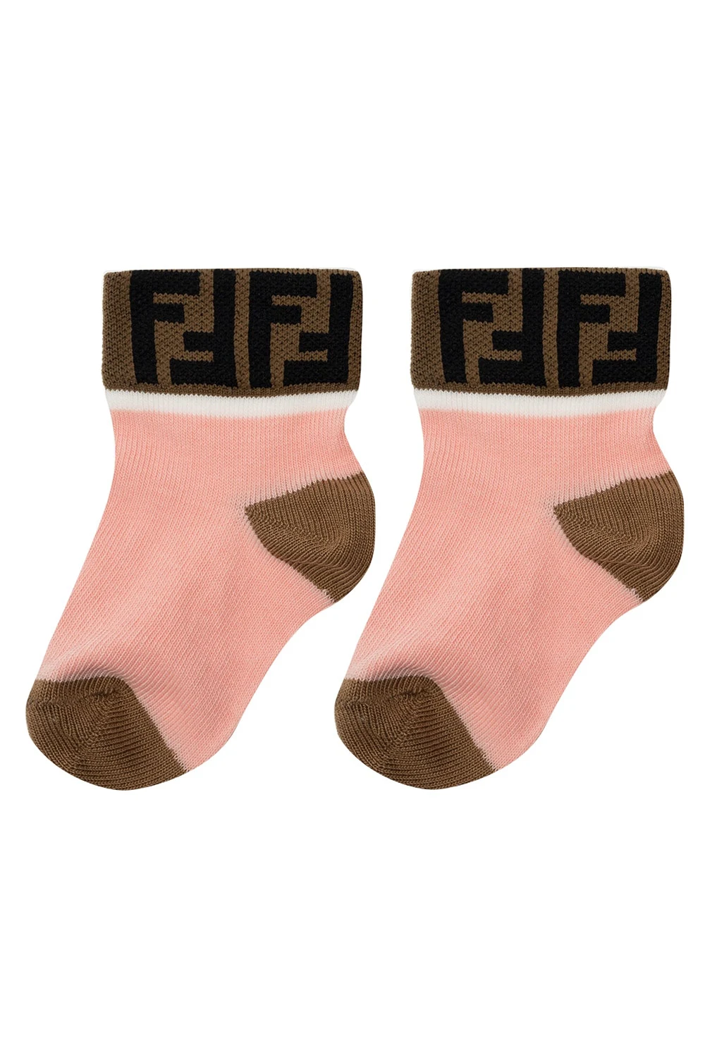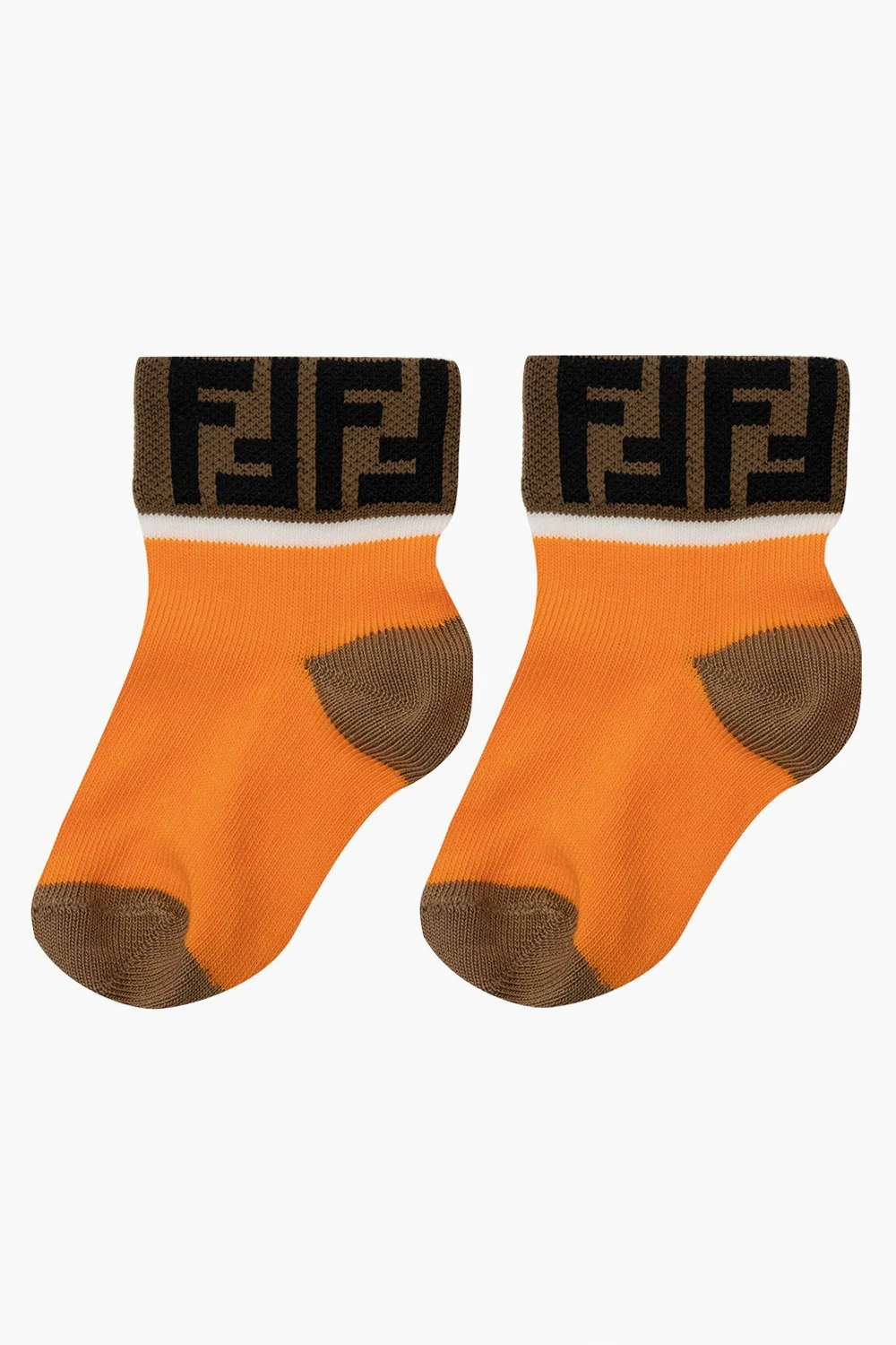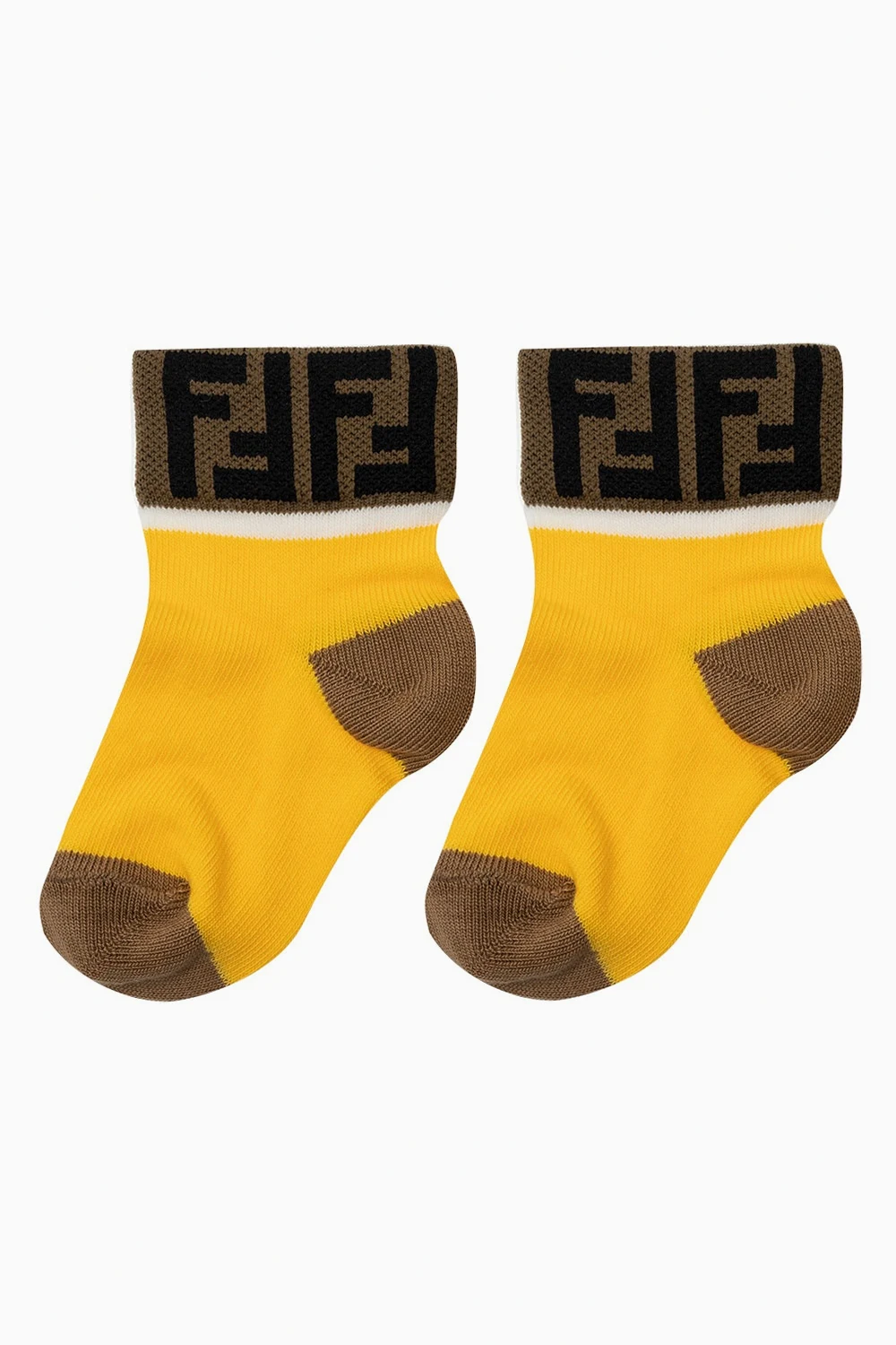 Zestaw siedmiu par kolorowych skarpet Fendi Kids. Wykonane z bawełny. Ozdobione wyszytym logo w kolorze czarnym. Dołączone kremowe etui ściągane trokami.