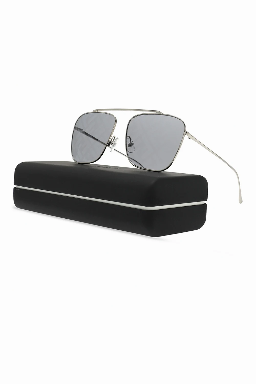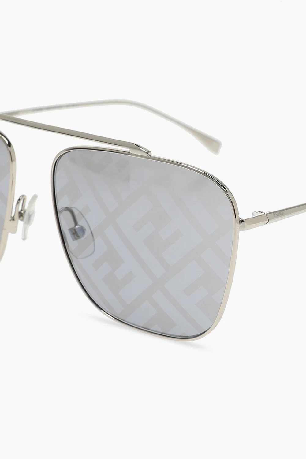 Okulary przeciwsłoneczne w kolorze srebrnym Fendi. Szare, certyfikowane soczewki 100% UVA i UVB ozdobione wzorem z logo.