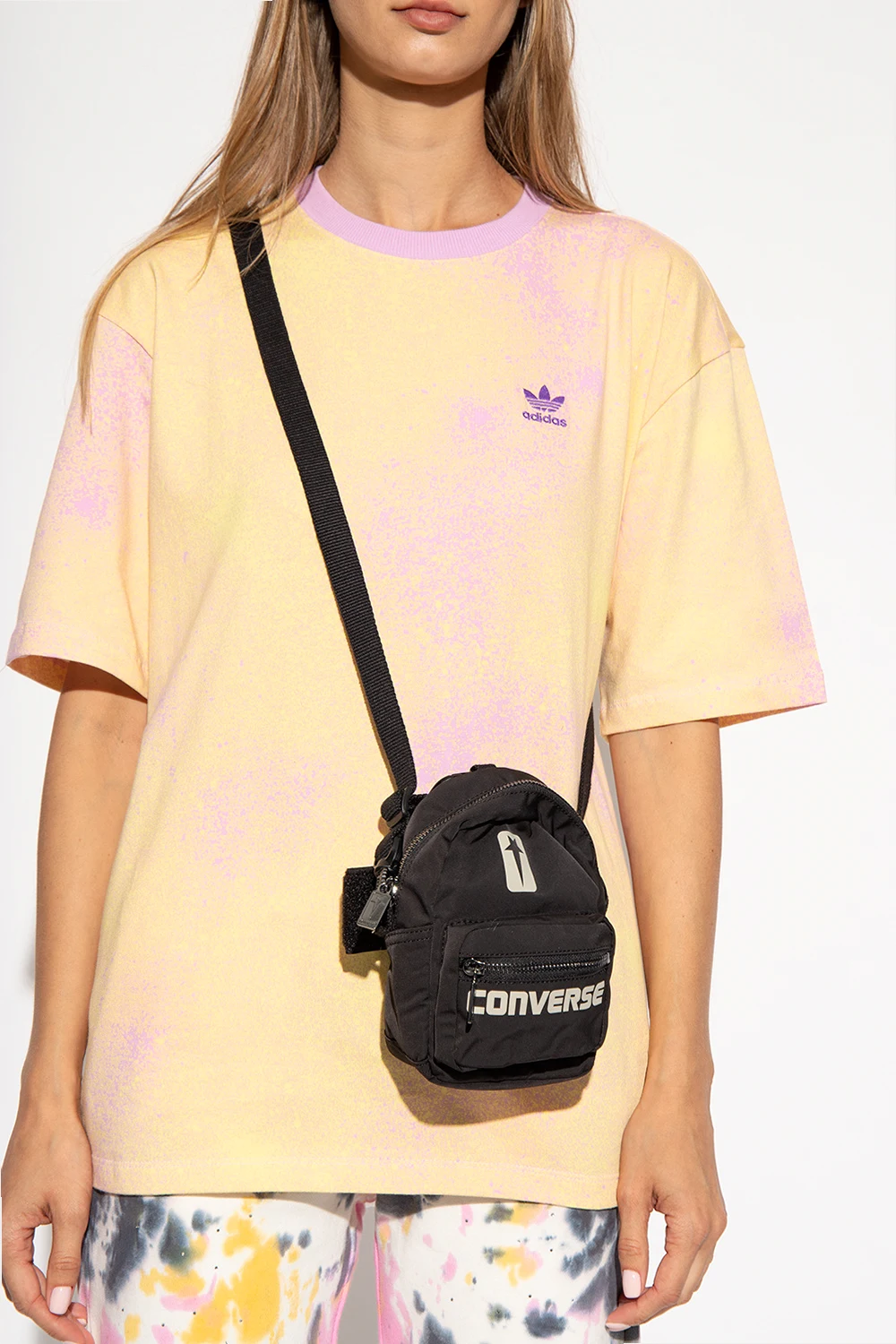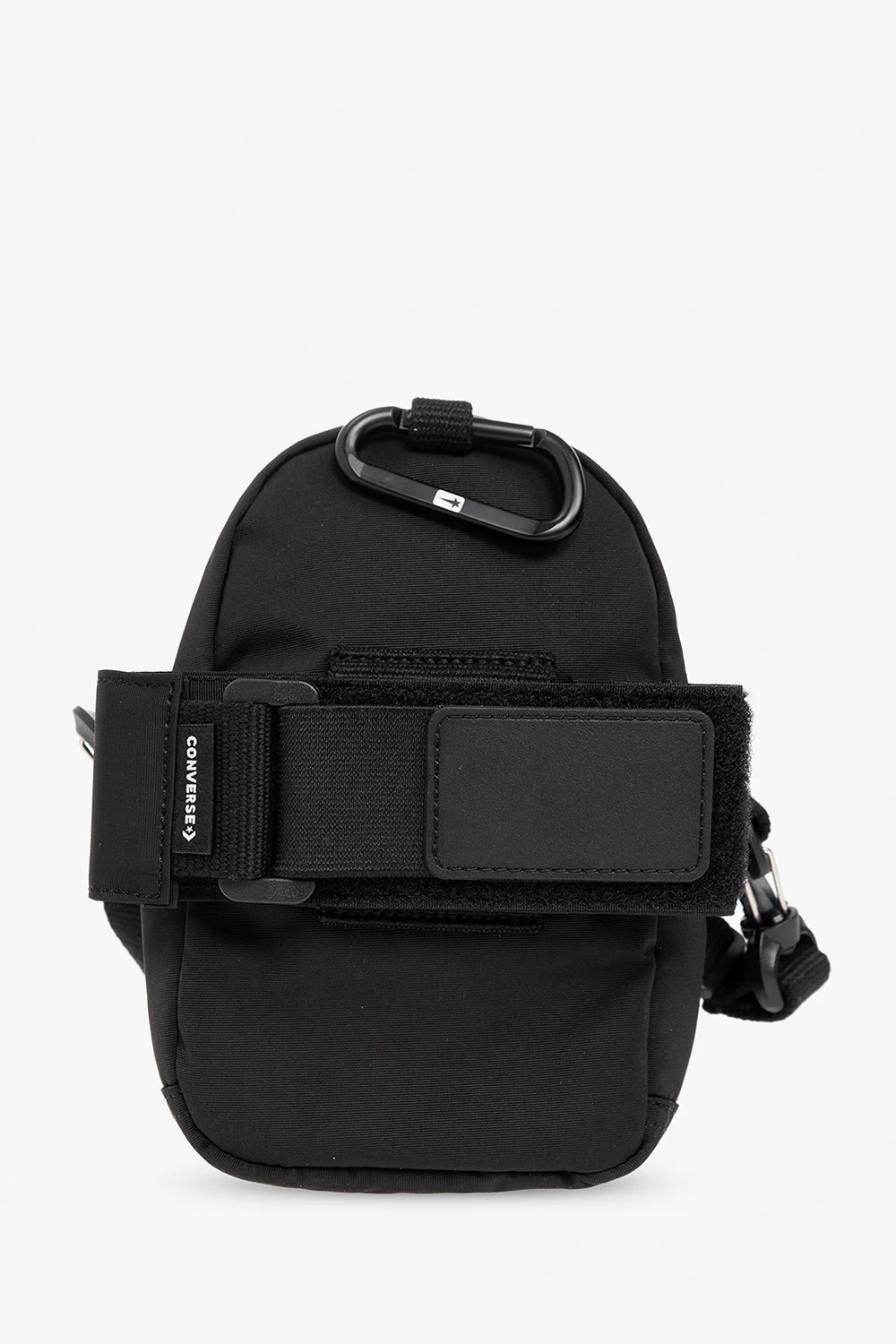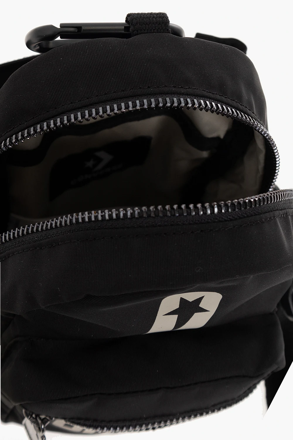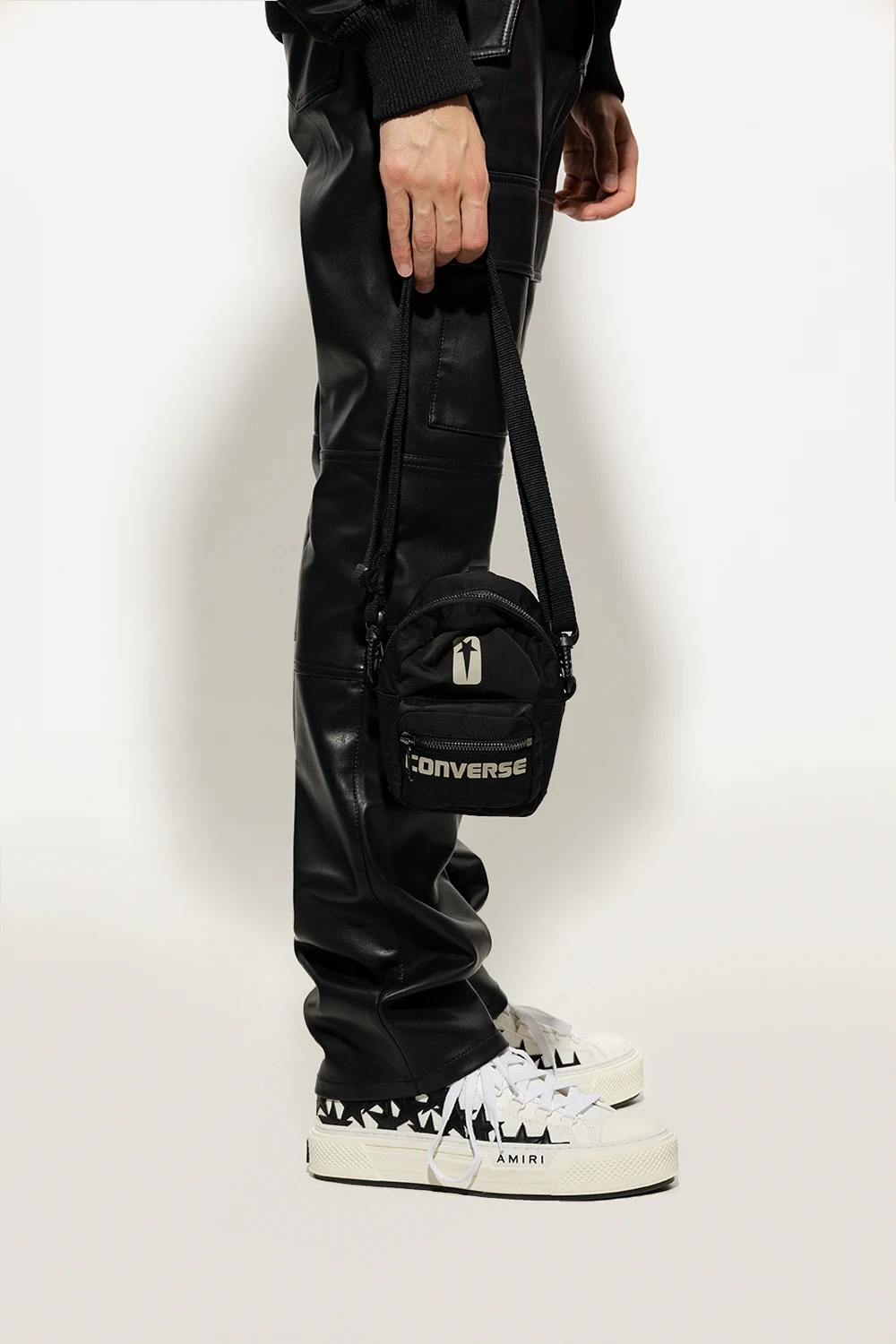Czarna torba na ramię Converse x Rick Owens DRKSHDW. Zamykana na zamek. Ozdobiona kremowym nadrukiem z logo. Dołączony karabińczyk. Z przodu kieszeń zamykana na zamek. Z tyłu zapięcie na rzep. Pas na ramię z możliwością regulacji długości. Wewnątrz komora oraz wsuwana kieszeń. Metalowe wykończenie w kolorze czarnym.