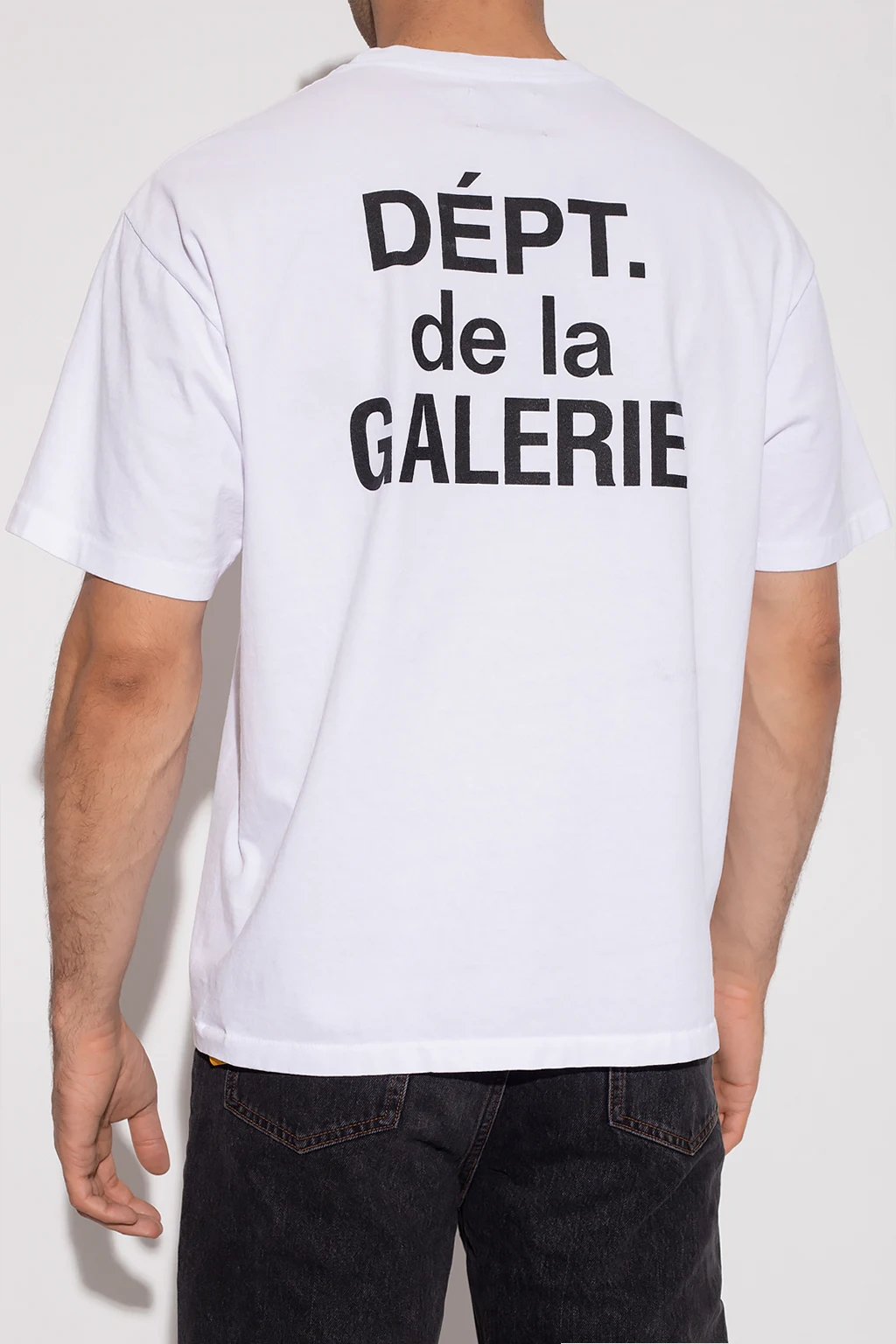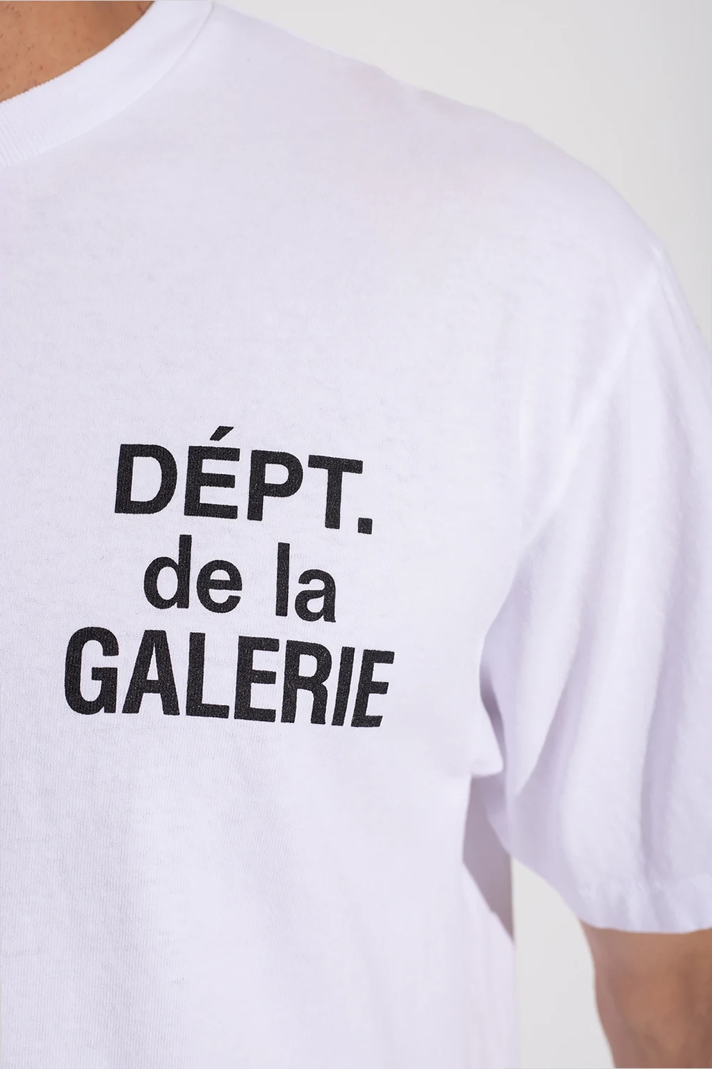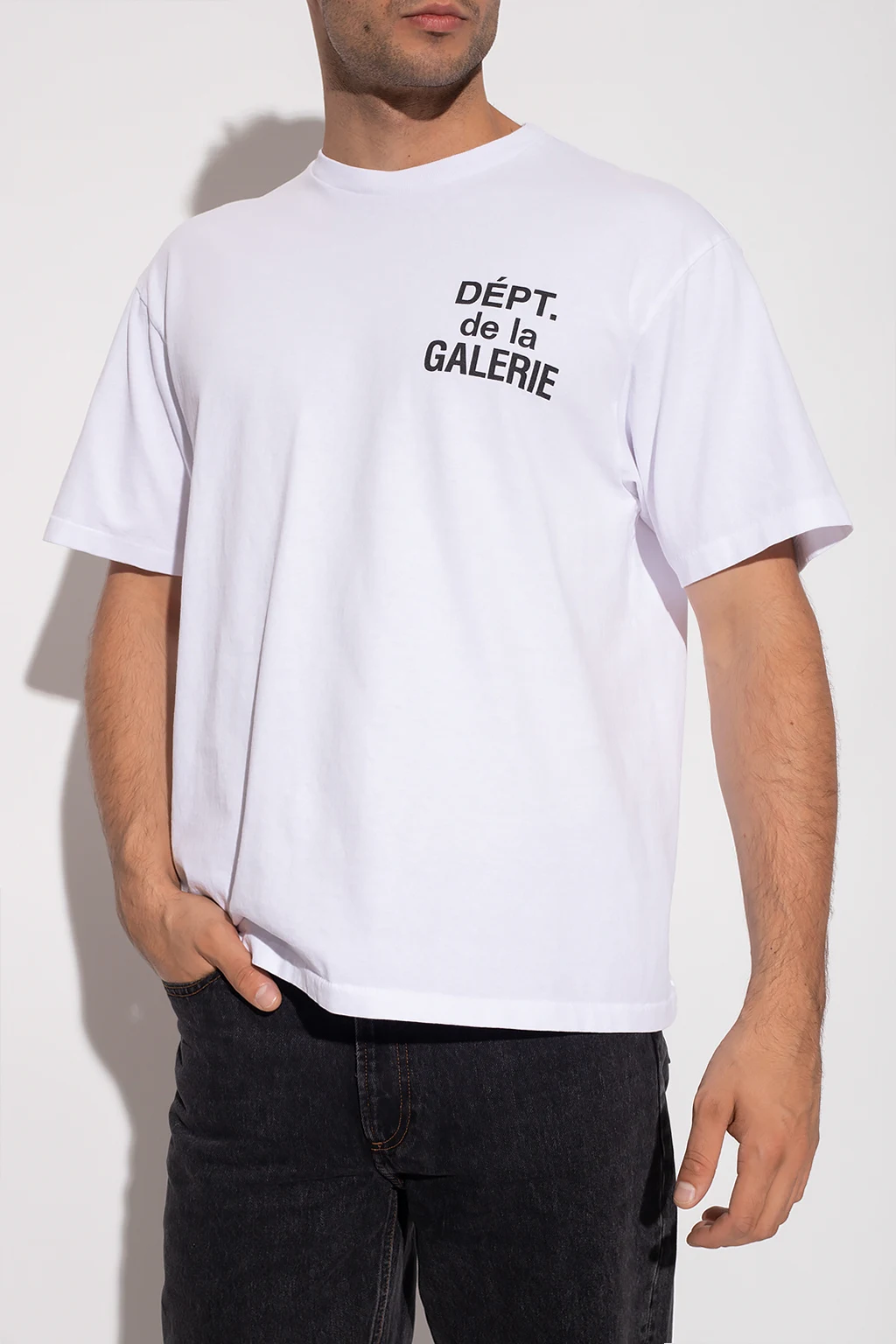 Biały t-shirt GALLERY DEPT. Wykonany z bawełny. Ozdobiony czarnym nadrukiem z logo. Okrągły dekolt wykończony ściągaczem. Krótkie rękawy.