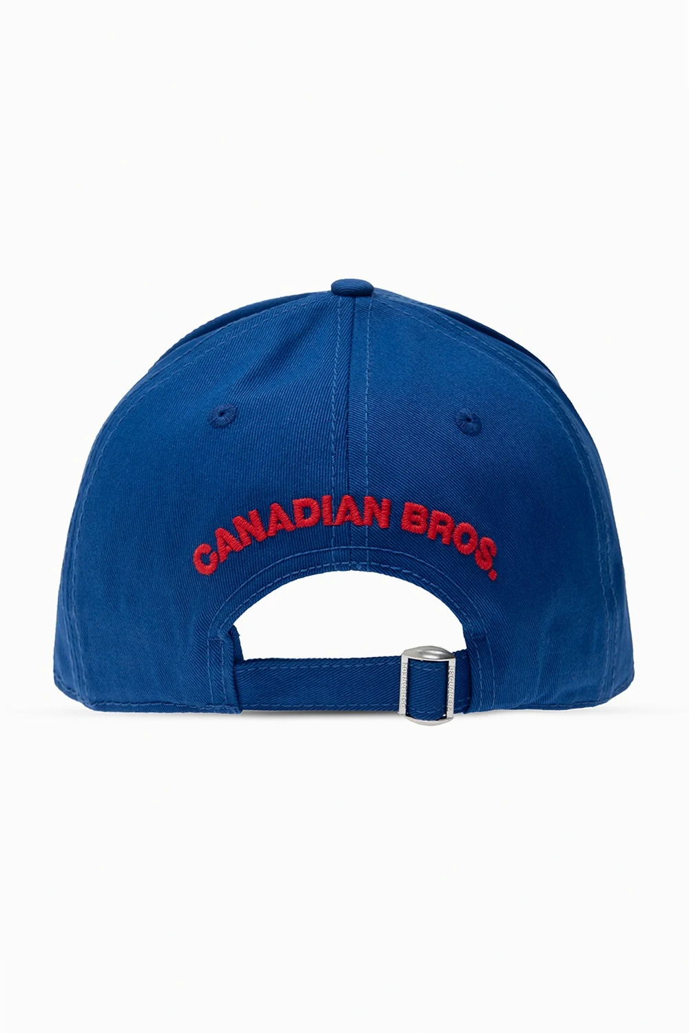 Niebieska, bawełniana czapka z daszkiem Dsquared2. Ozdobiona naszywką z logo w kolorze czarno-czerwonym. Z tyłu regulowany pasek.