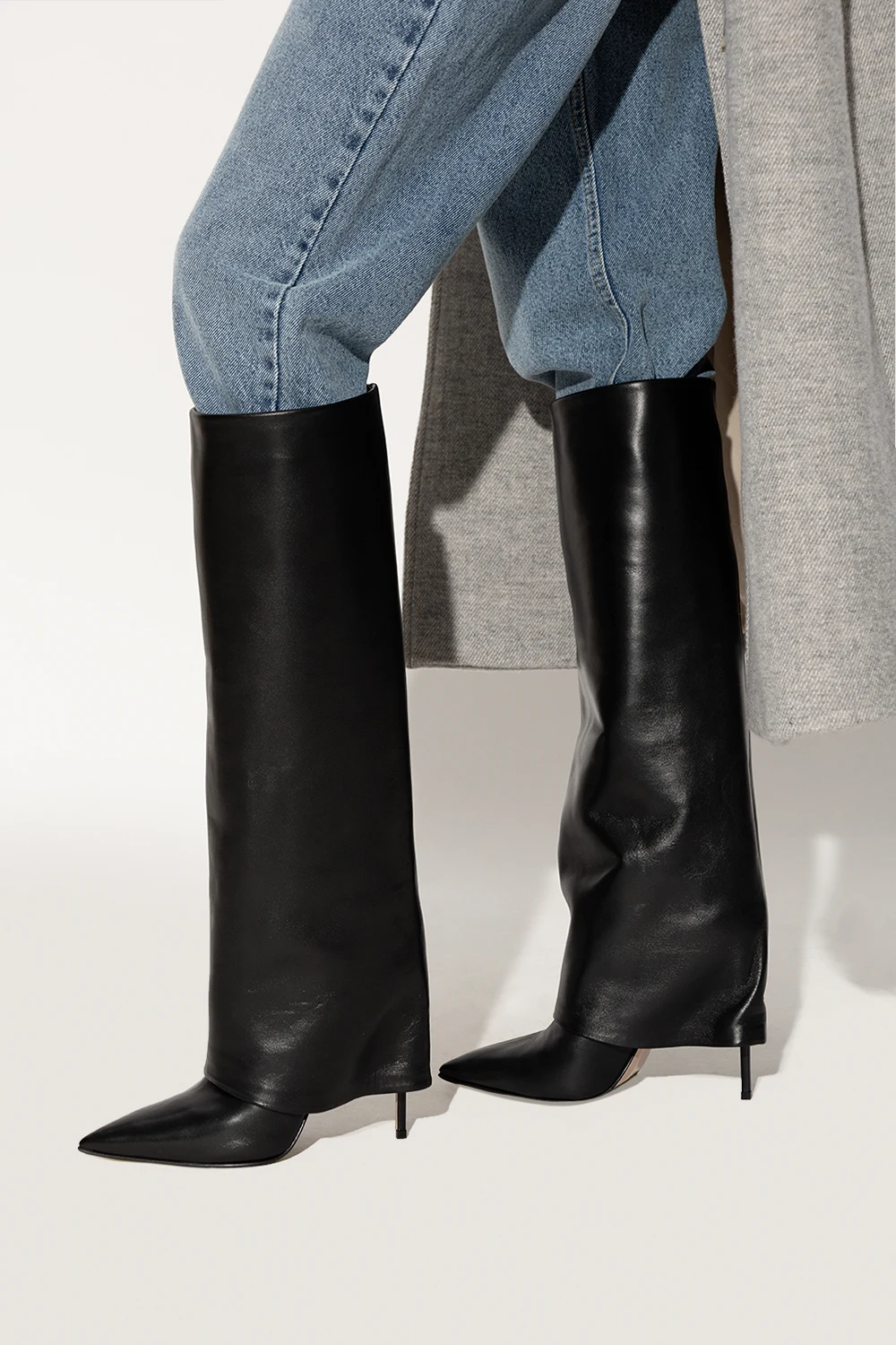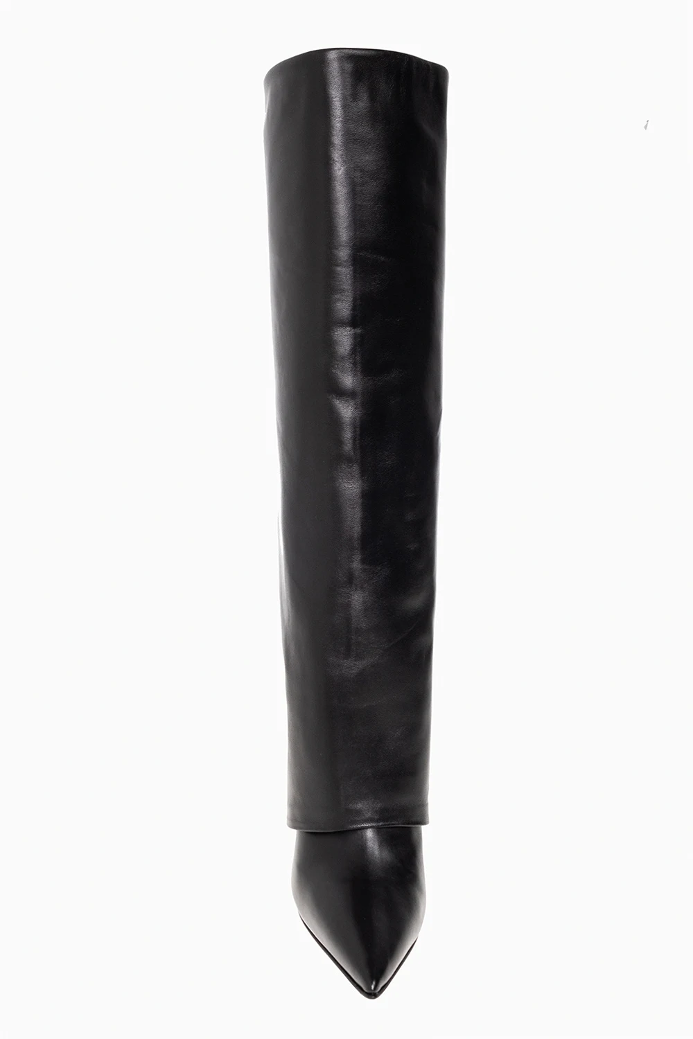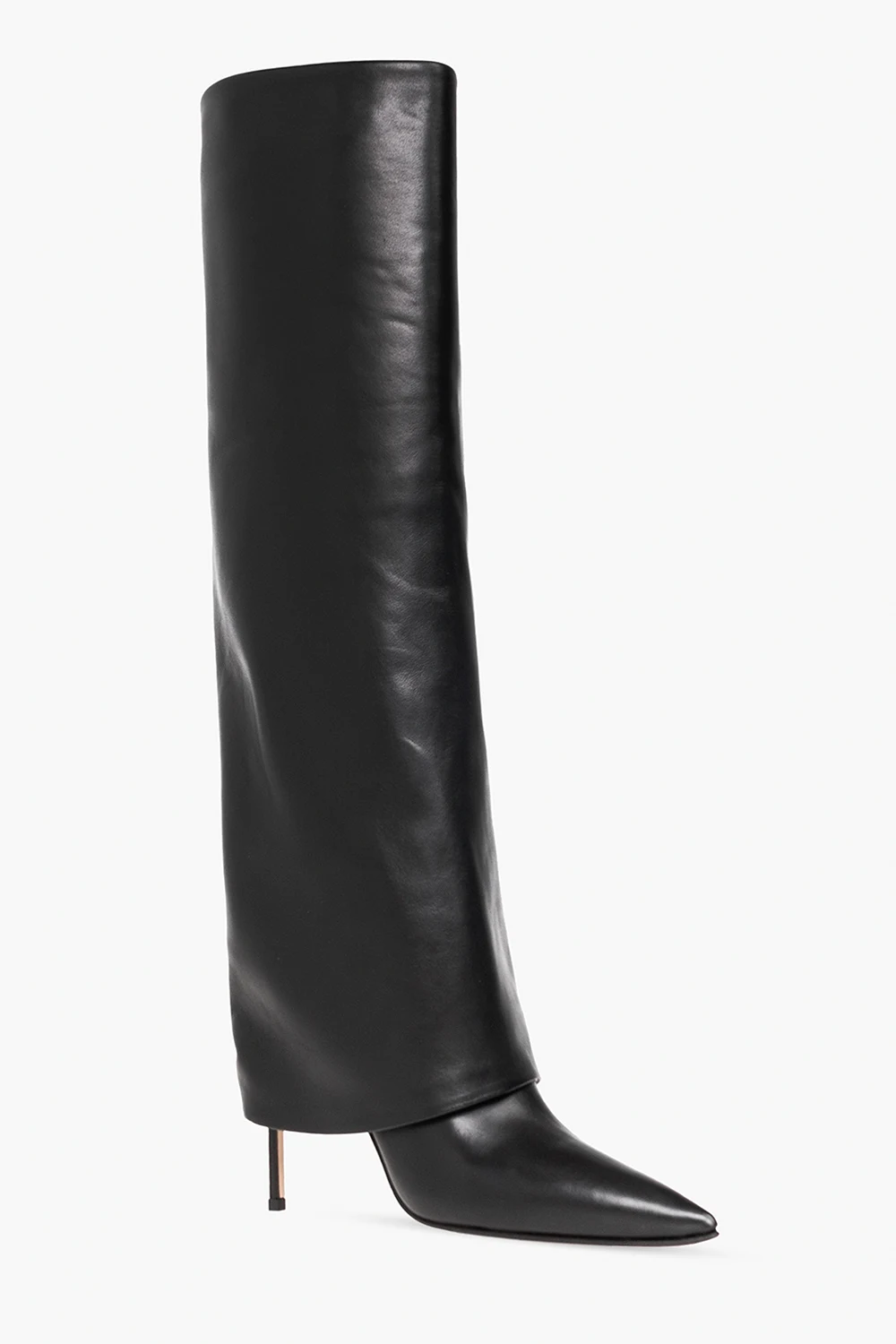 Czarne, wsuwane kozaki na obcasie, ‘Andy’ Le Silla. Wykonane ze skóry. Wysoka, dwuwarstwowa cholewka. Nosek w szpic. Kremowo-czarna, skórzana podeszwa wykończona gumą.