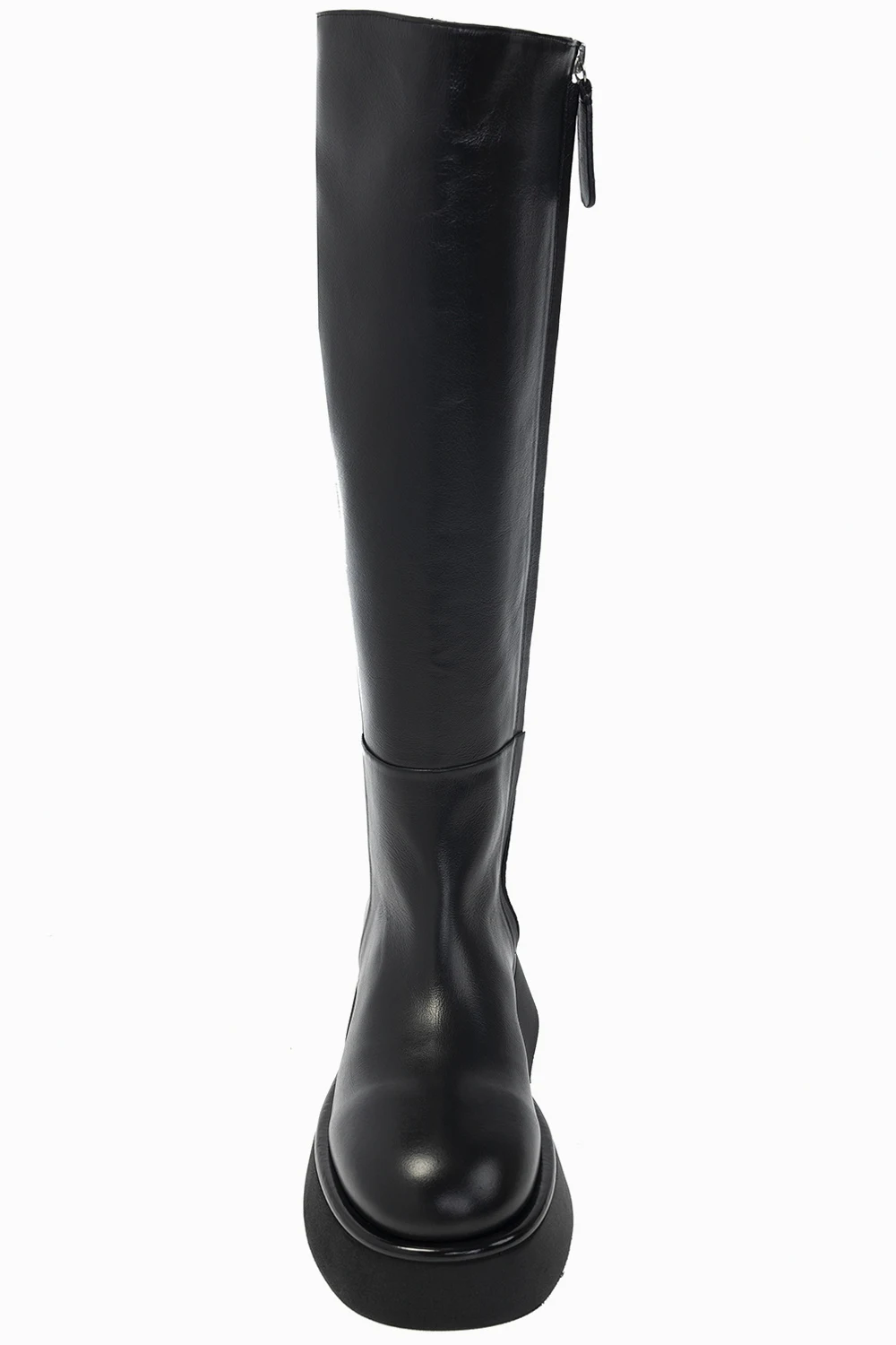 Czarne kozaki, model ‘Rosa’ Wandler. Wykonane ze skóry cielęcej. Z boku zapinane na zamek. Warstwa wewnętrzna w kolorze beżowym. Czarna, gumowa podeszwa.