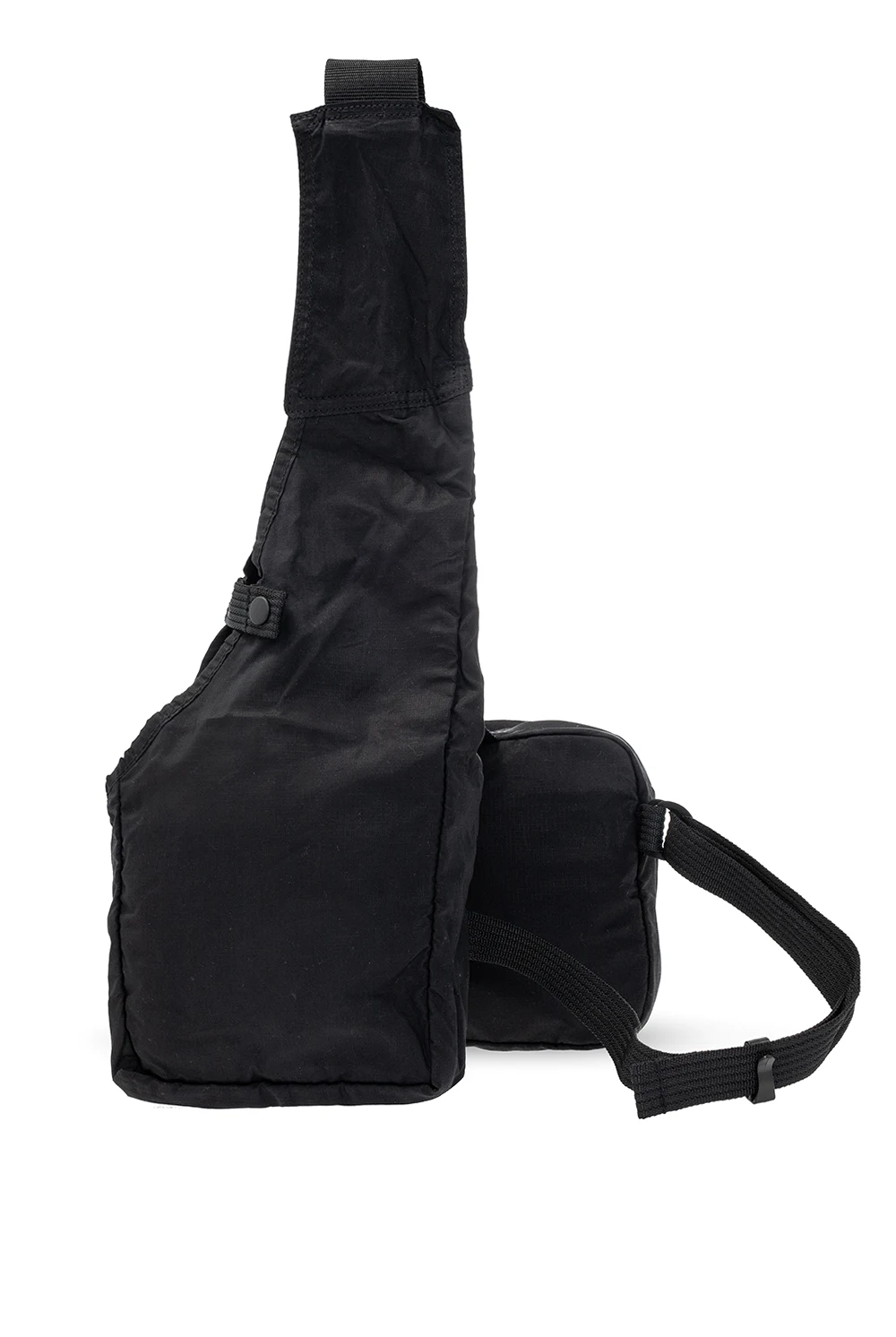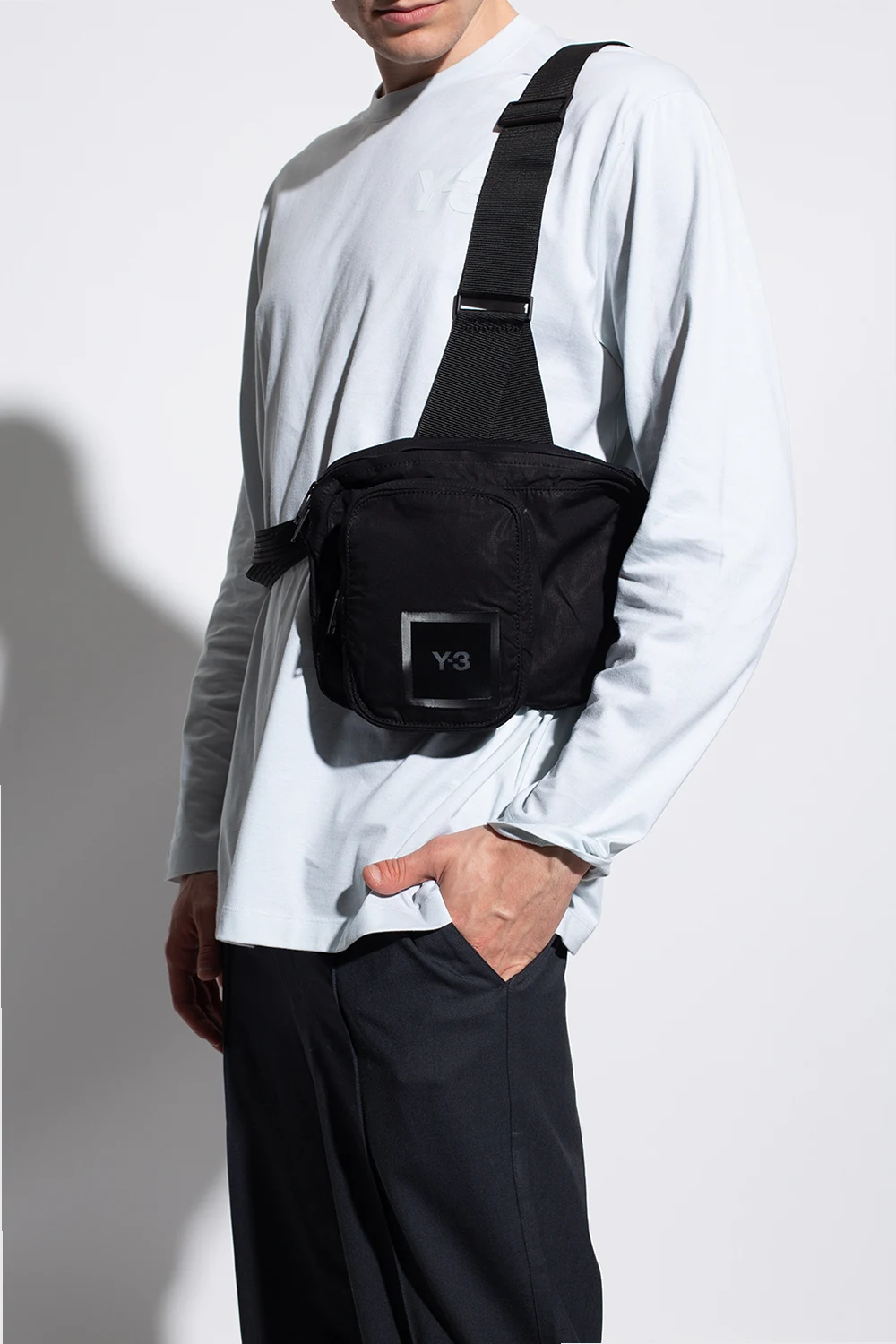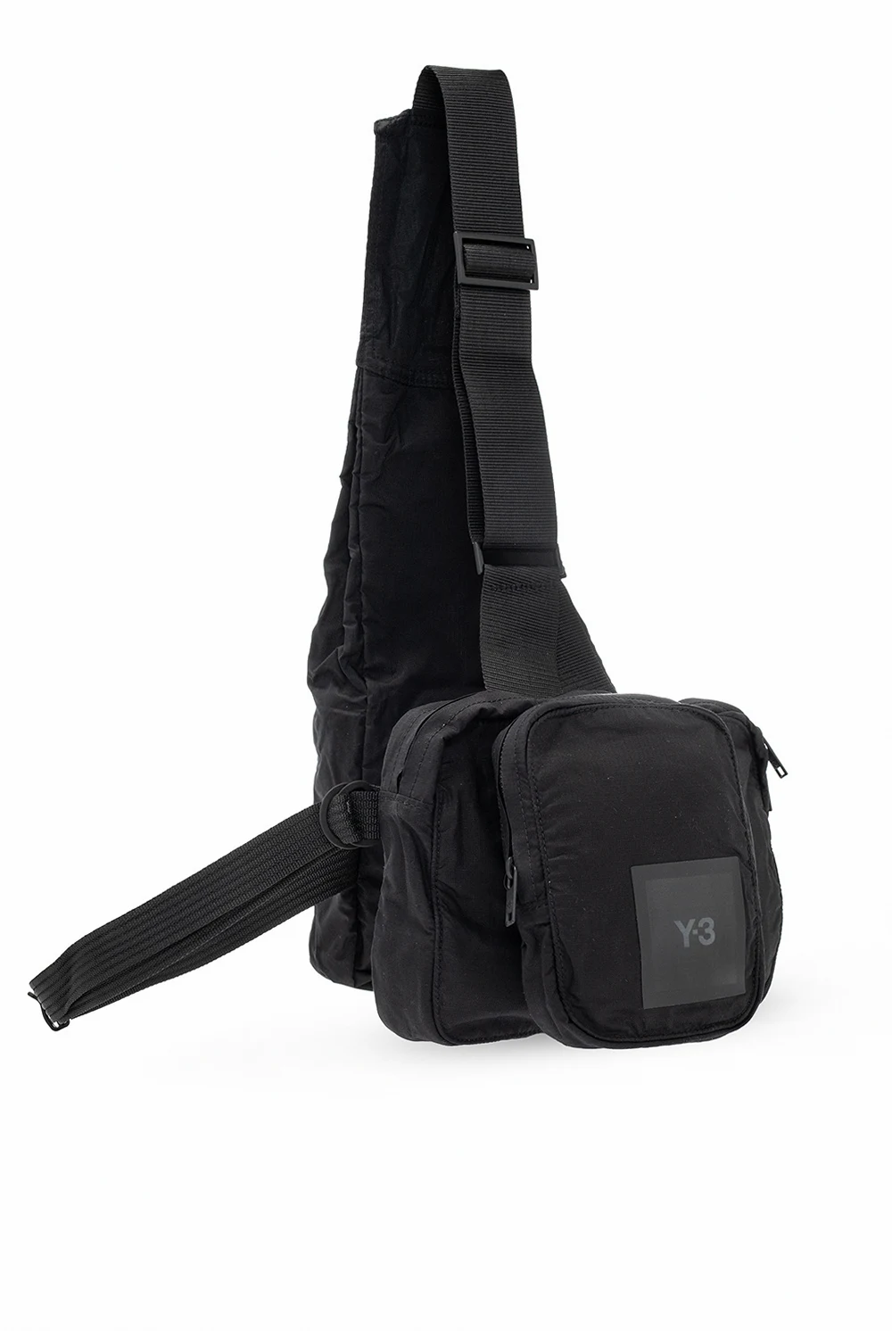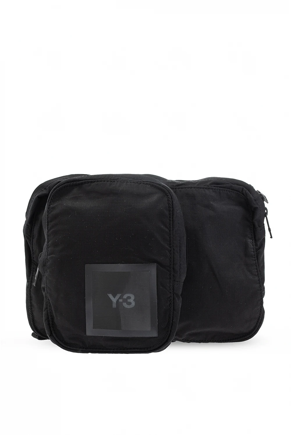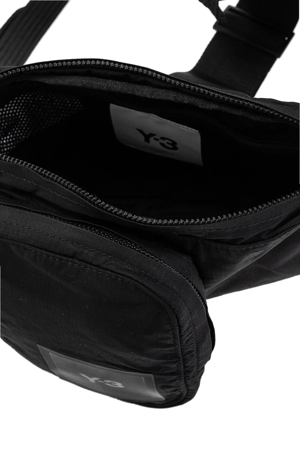 Dwie, czarne torby na szelkach Y-3 Yohji Yamamoto. Jedna z przodu zamykana na zamek z kieszenią zamykaną na zamek i naszywką z logo. Druga zamykana na zatrzask. Regulowane pasy jeden w talii.