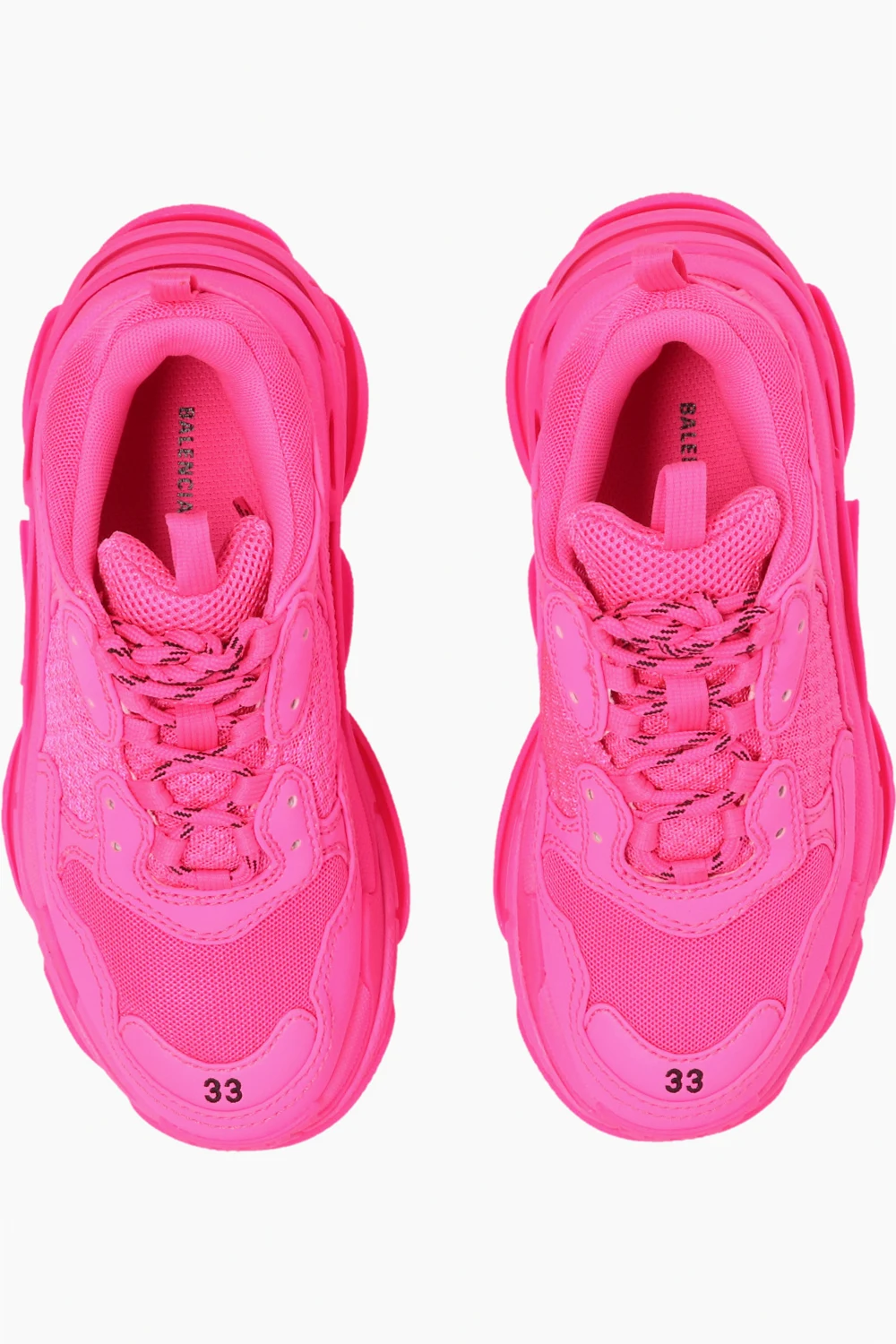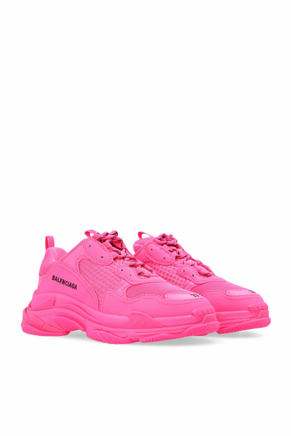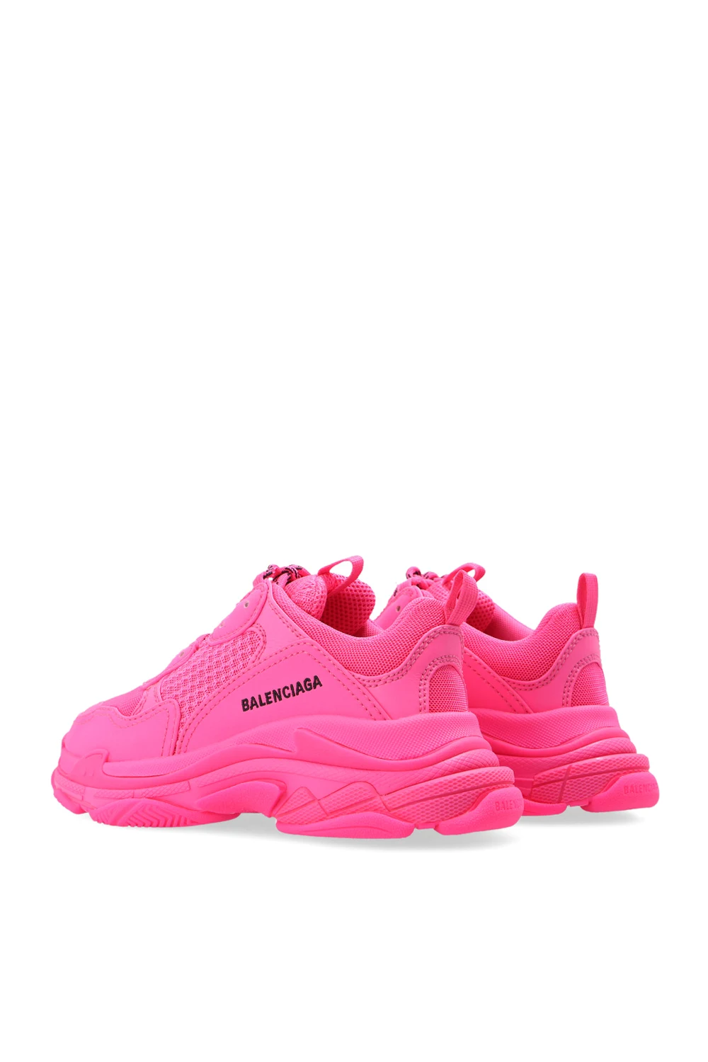 Różowe, sznurowane buty sportowe, model ‘Triple S’ Balenciaga Kids. Wykończone siatką. Wyszyte logo w kolorze czarnym. Różowa, gumowa podeszwa.