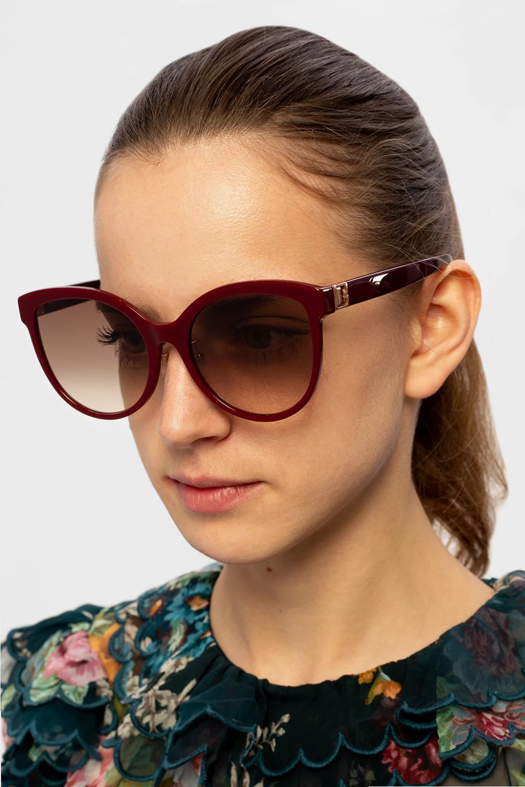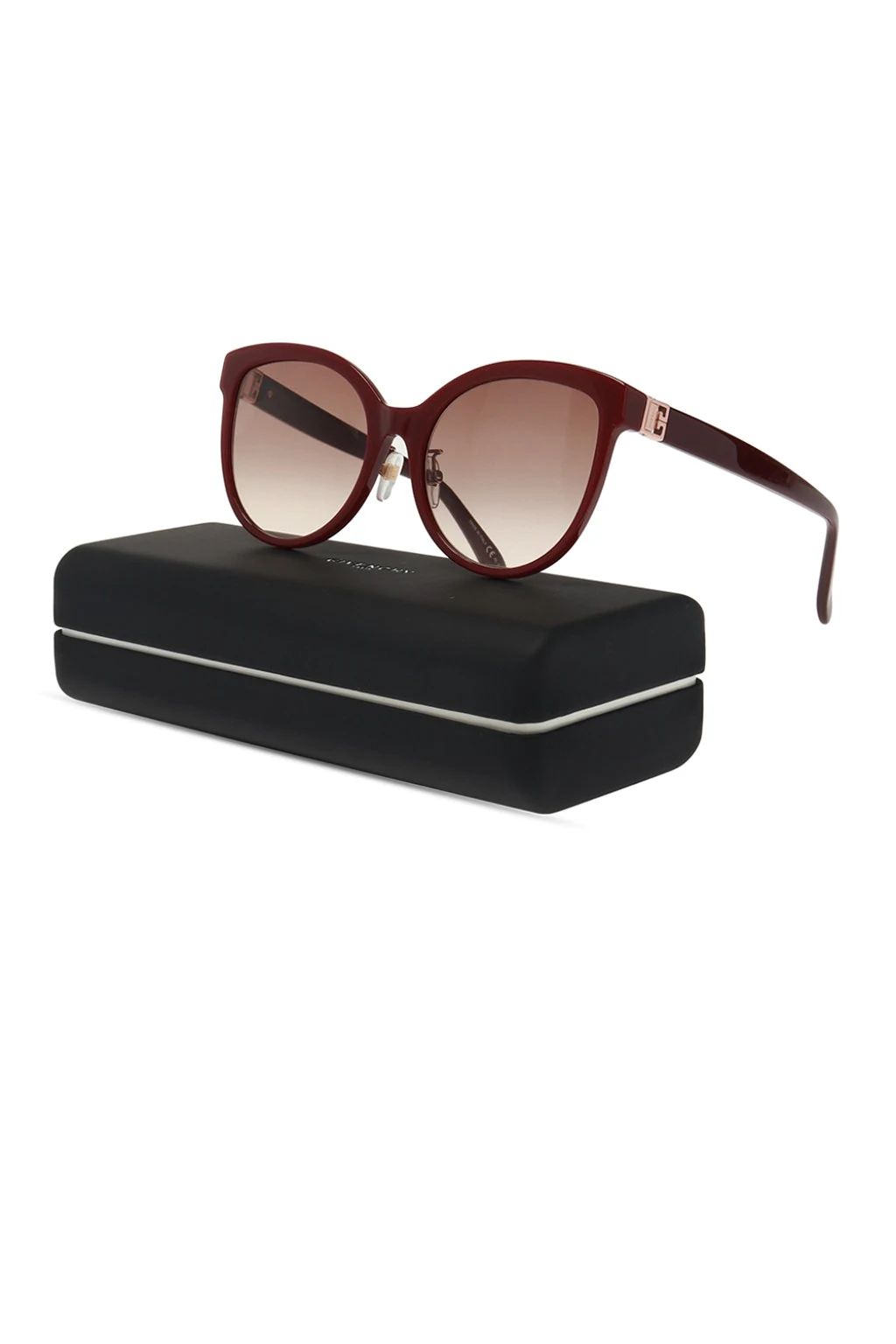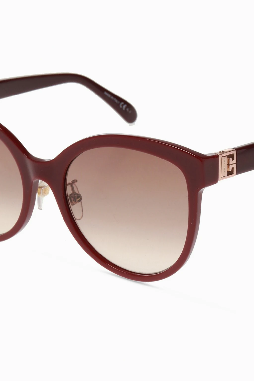 Bordowe okulary przeciwsłoneczne, model ‘G/S’ Givenchy. Zauszniki z aplikacją z logo w kolorze złotym. Brązowe, gradientowe, certyfikowane soczewki UVA/UVB.