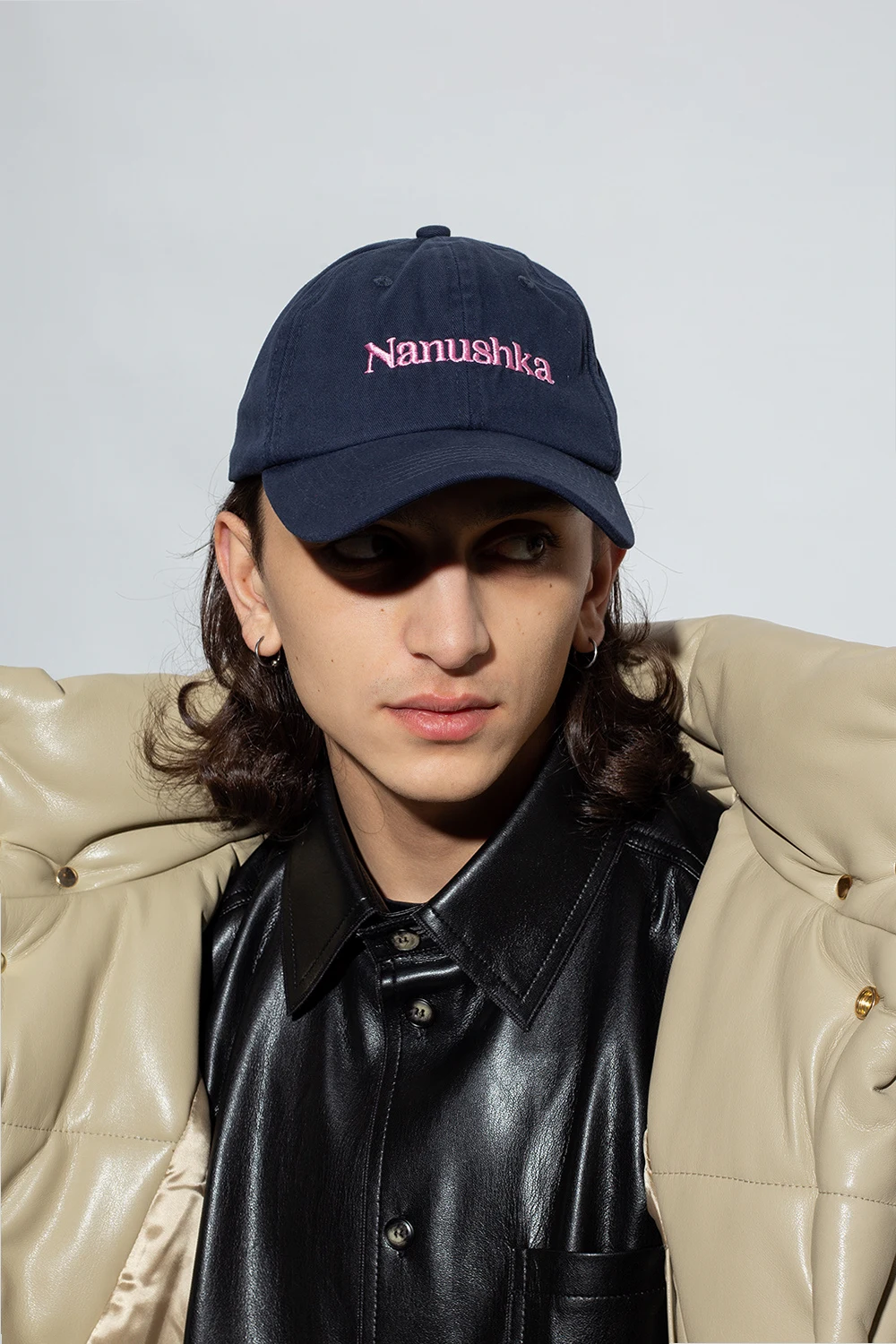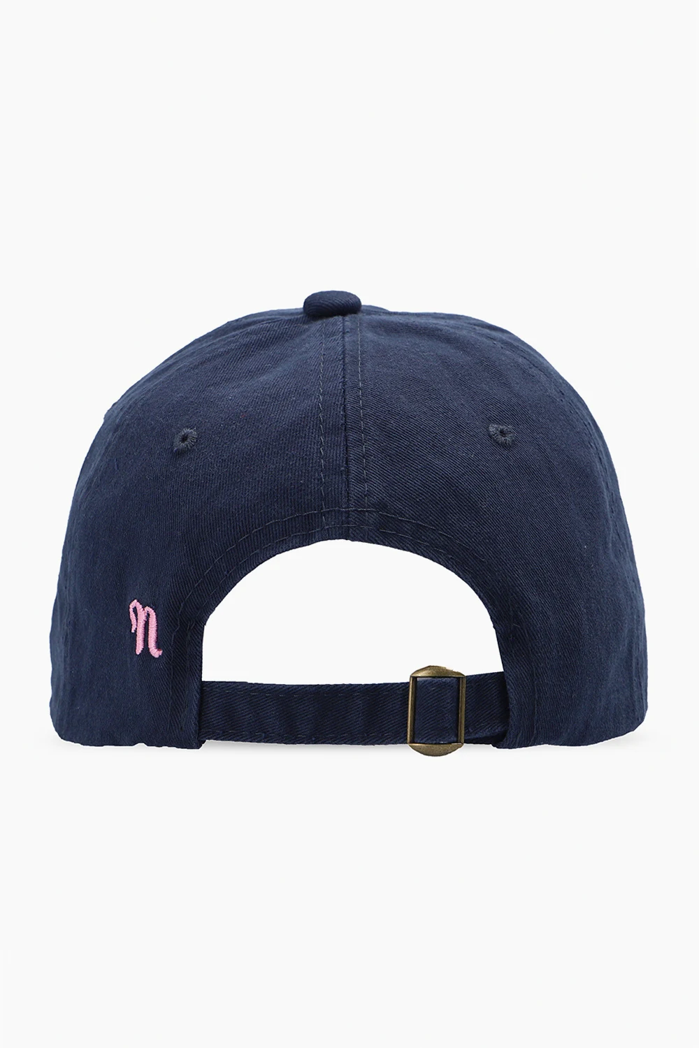 Granatowa czapka z daszkiem, model ‘Val’ Nanushka. Wykonana z bawełny organicznej. Z przodu wyszyte różowe logo.