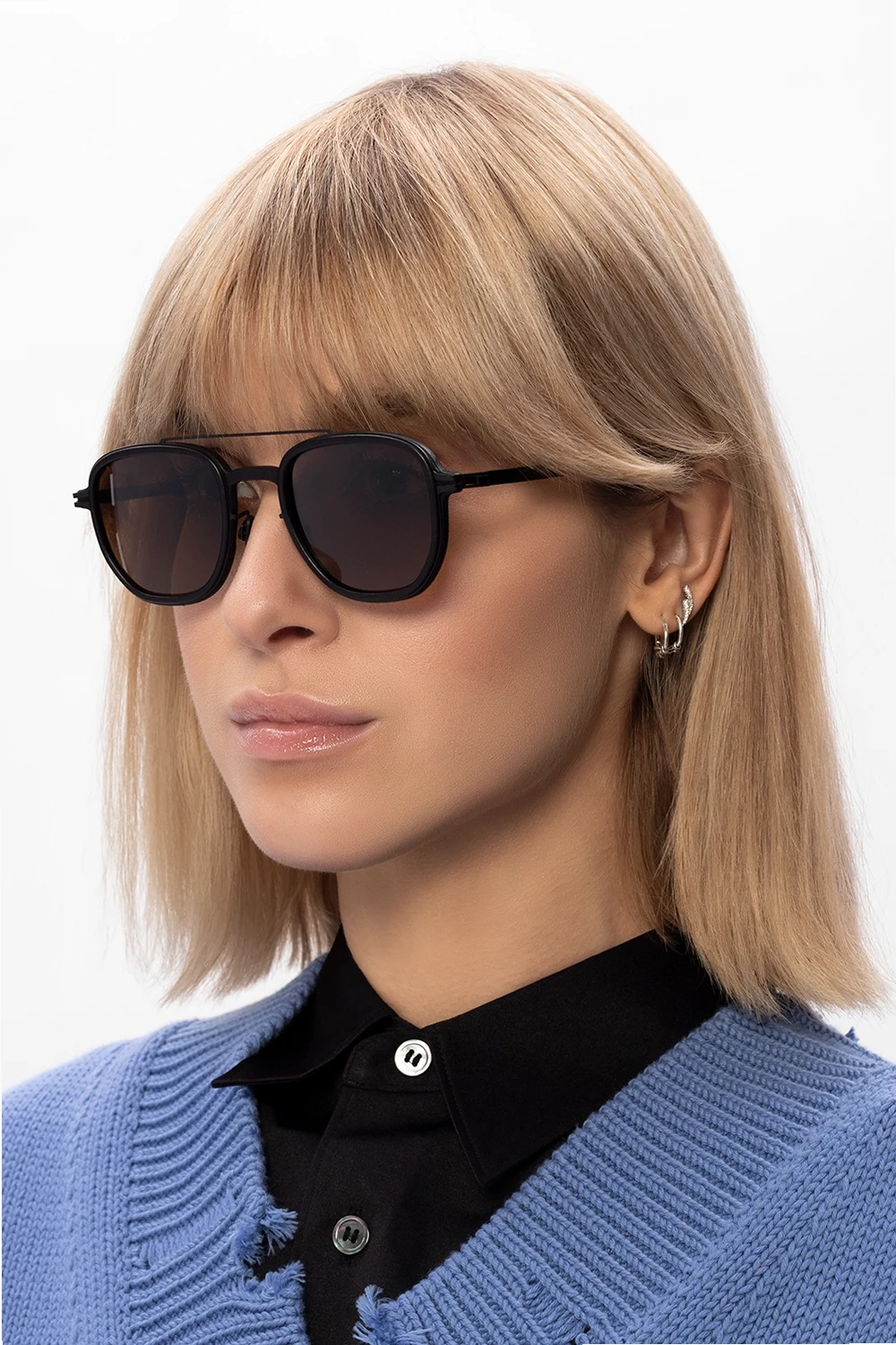 Brązowe okulary przeciwsłoneczne, model ‘Alder’ Mykita. Certyfikowane soczewki 100% UVA i UVB w kolorze brązowym. Wykonane ręcznie.