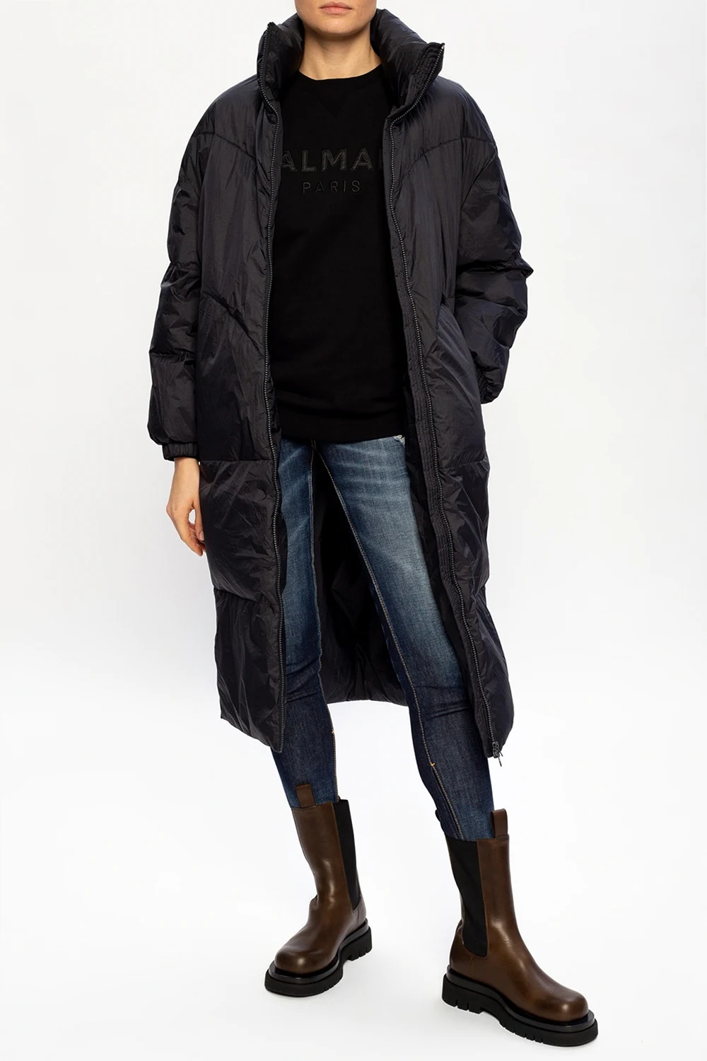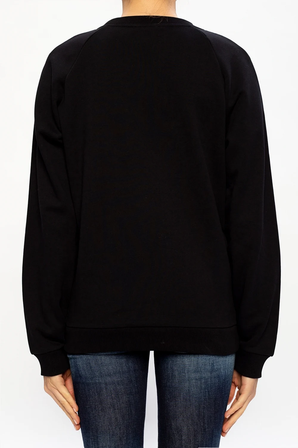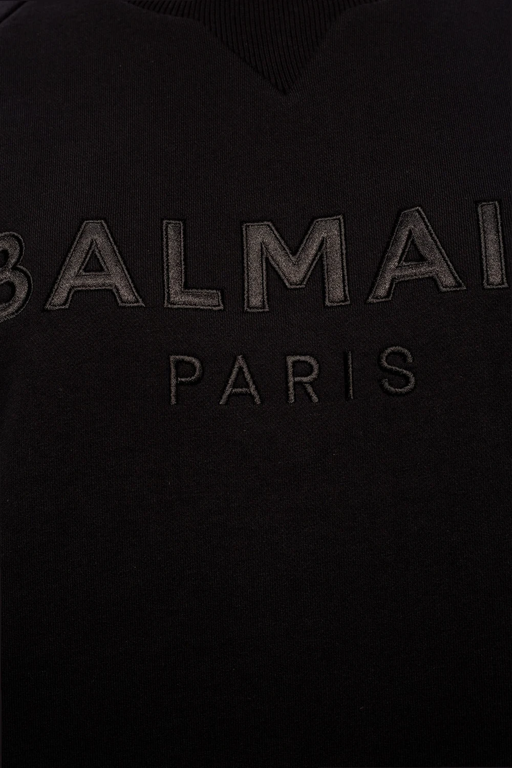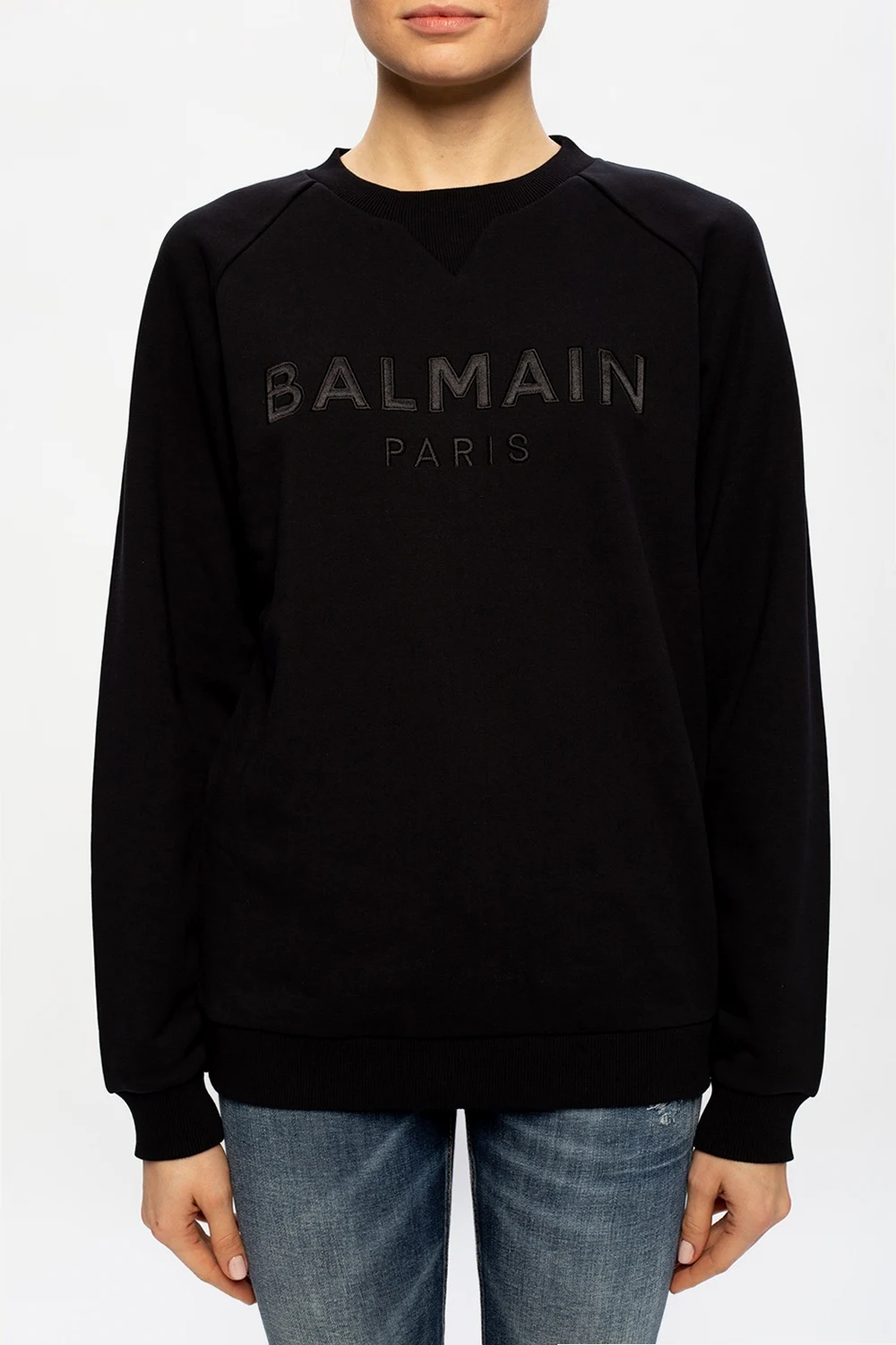 Czarna, bawełniana bluza Balmain. Z przodu wyszyte logo. Okrągły dekolt. Długie rękawy i dół bluzy zakończone ściągaczem.