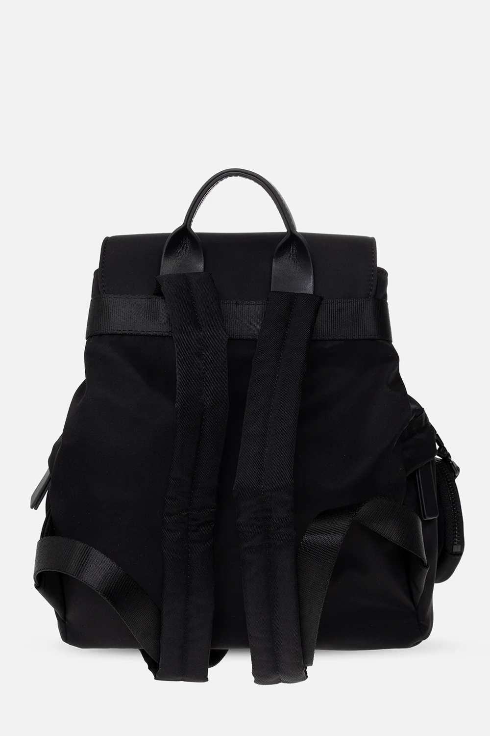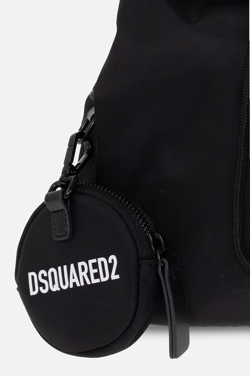 Czarny plecak Dsquared2 Kids. Zapinany na zatrzask. Ozdobiony wzorem z logo w kolorze białym. Szelki z możliwością regulacji długości. Kieszeń zamykana na zamek. Wewnątrz komora ściągana trokami. Metalowe wykończenie w kolorze czarnym.