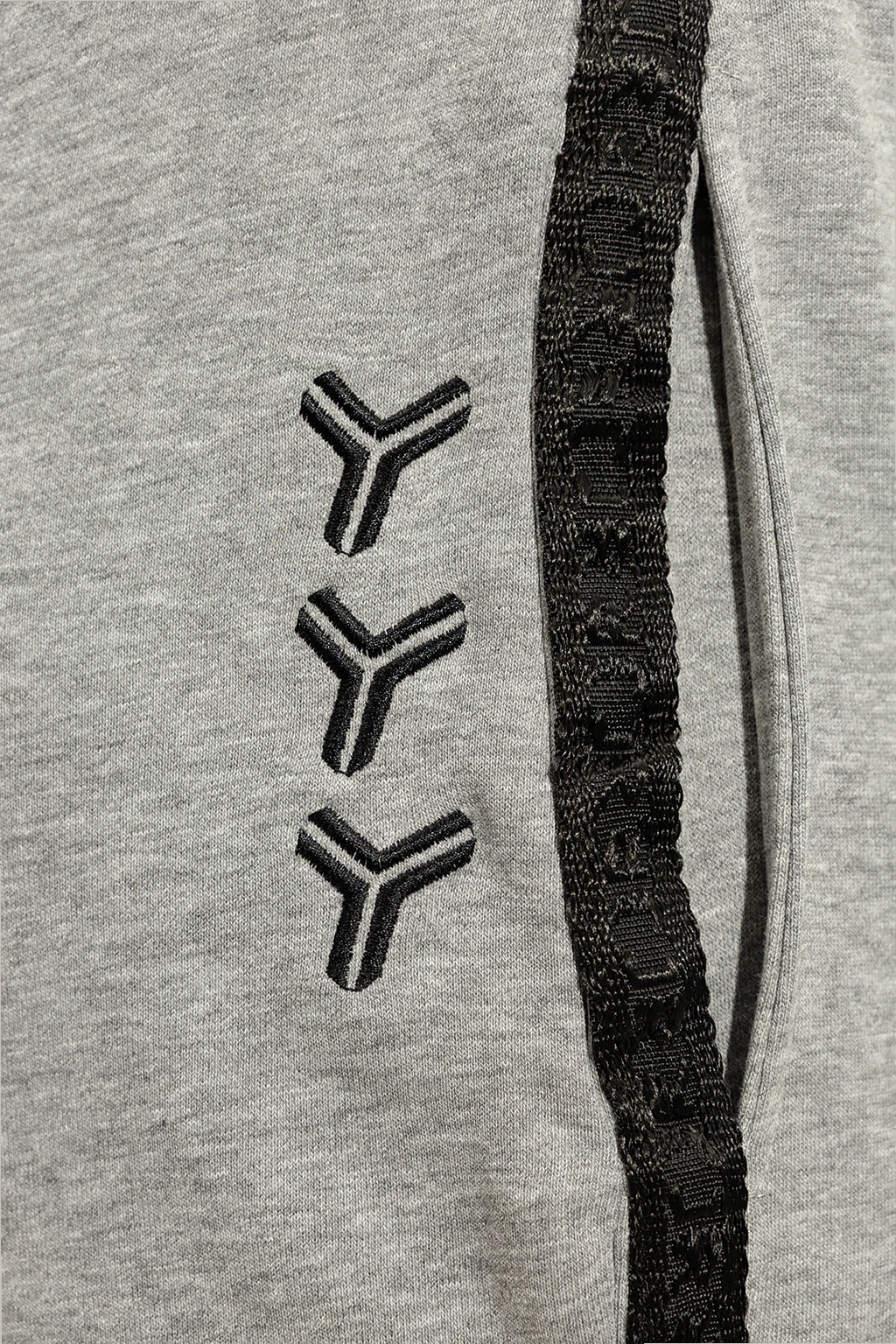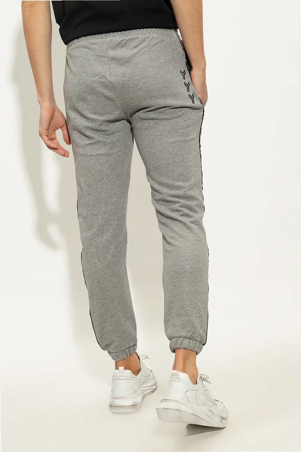 Szare spodnie dresowe John Richmond, linia ‘Sport’. Wykonane z bawełny. W pasie wszyta guma ściągana trokami. Z przodu dwie wsuwane kieszenie. Po bokach lampasy z wyszytym monogramem w kolorze ciemnoszarym. Nogawki zakończone ściągaczami.