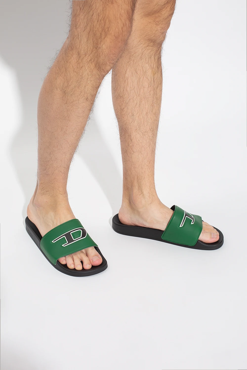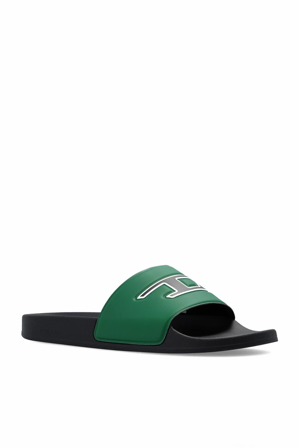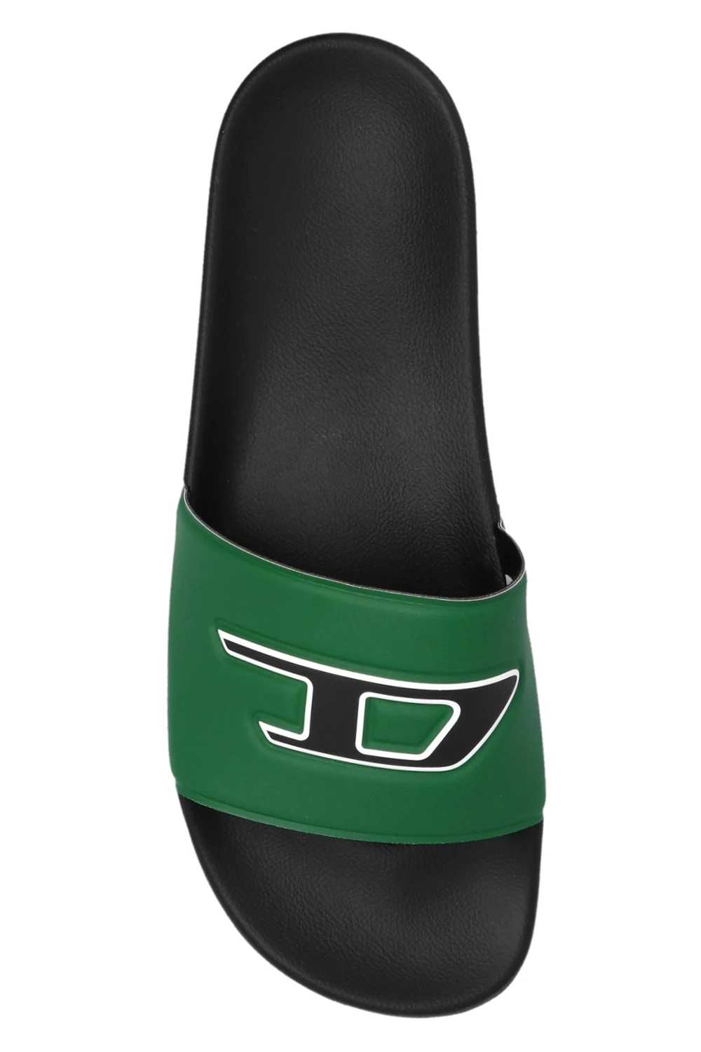 Zielono-czarne, gumowe klapki, model 'SA-MAYEMI' Diesel. Z przodu ozdobione biało-czarnym logo.
