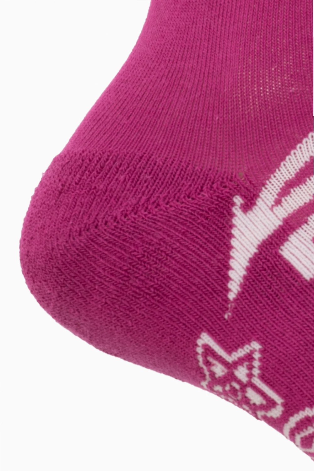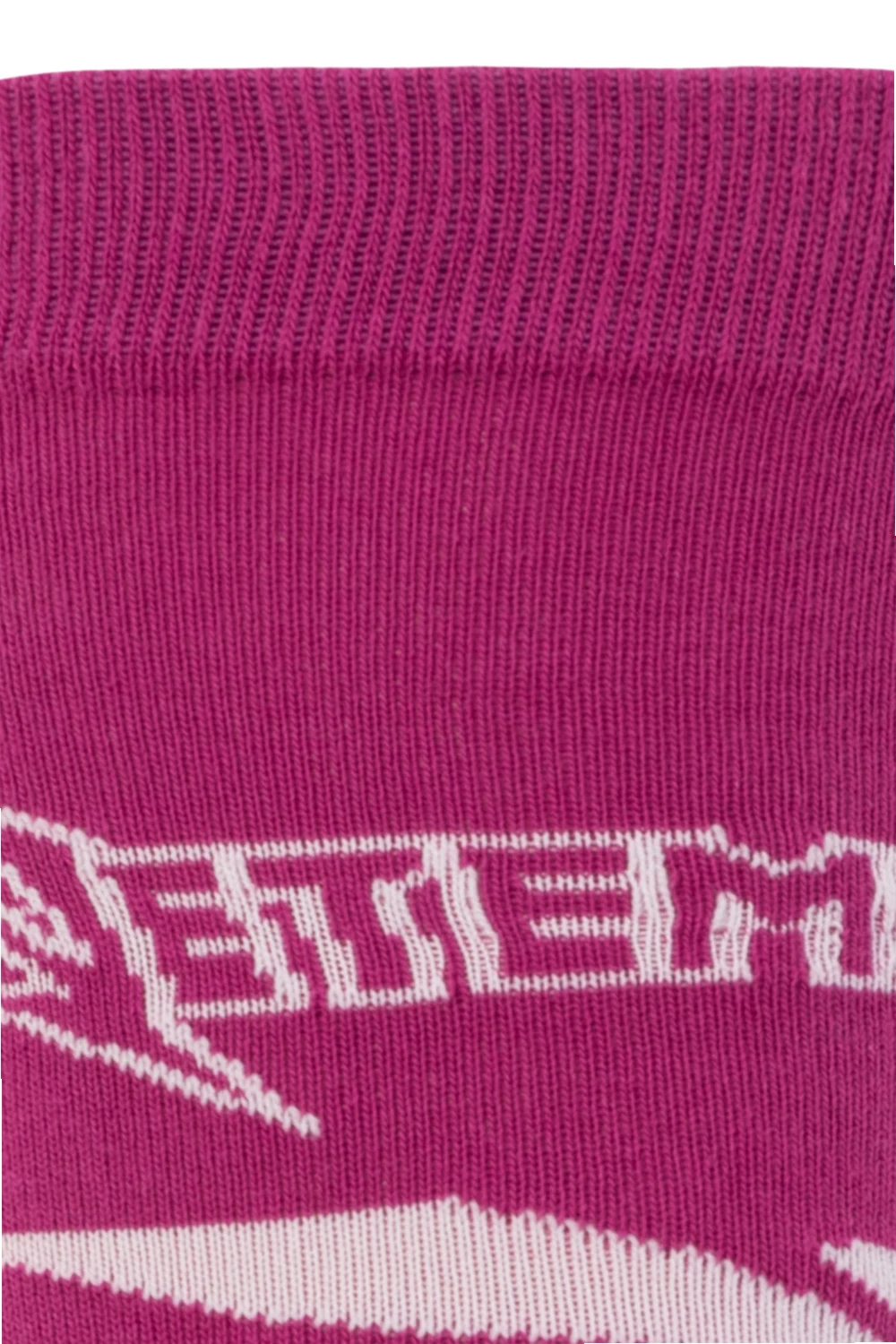 Ciemnoróżowe, bawełniane skarpety VETEMENTS x Reebok. Ozdobione białym wzorem z logo. Zakończone ściągaczem.
