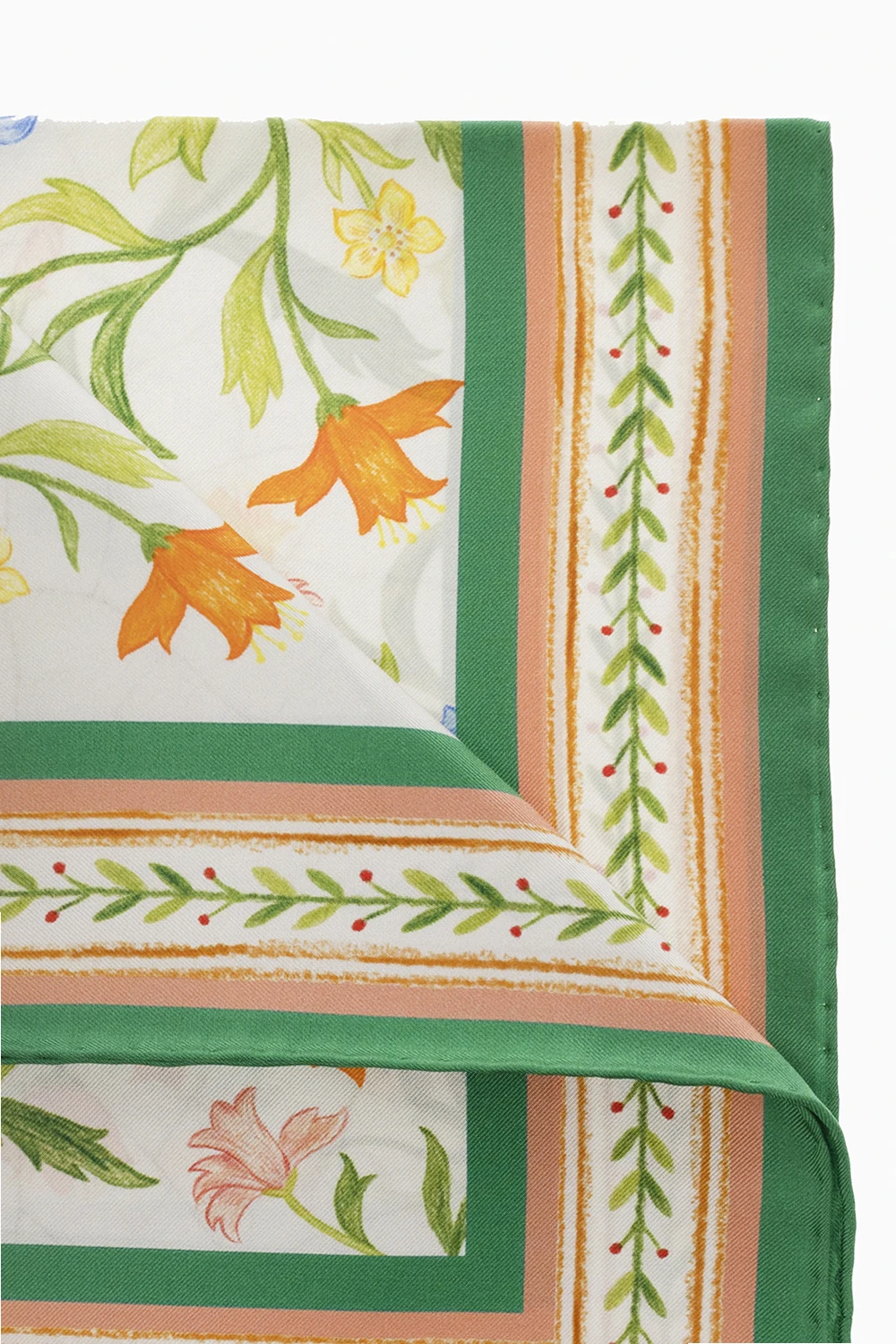 Kolorowa chusta Casablanca. Wykonana z jedwabiu. Ozdobiona kolorowym wzorem z motywem kwiatowym.