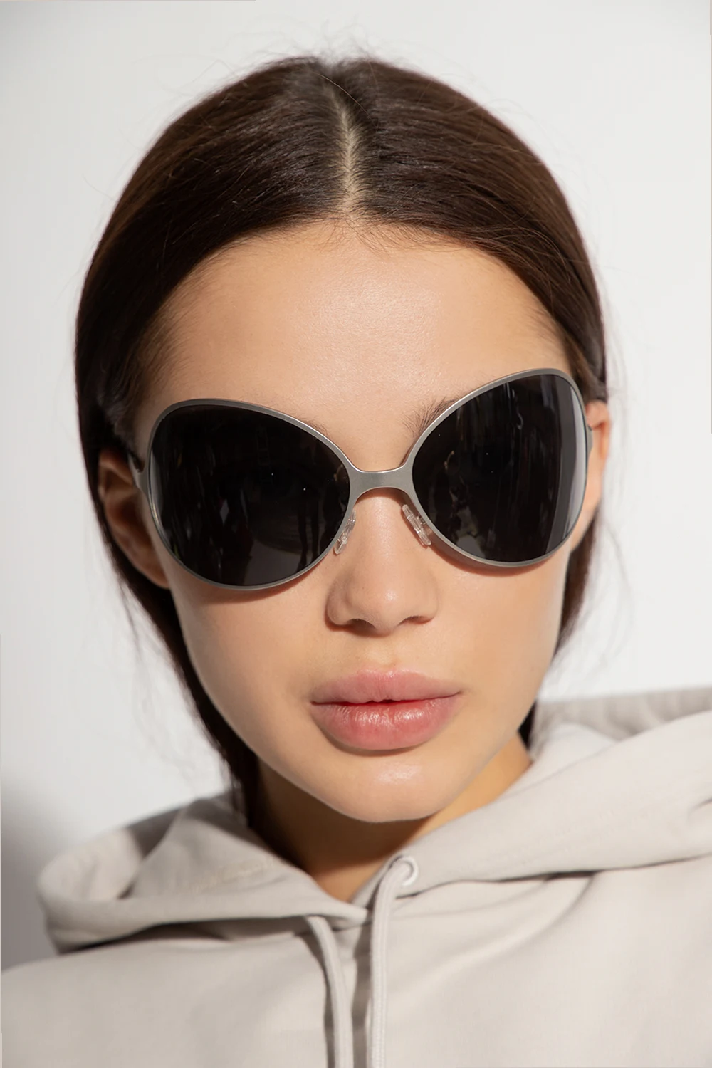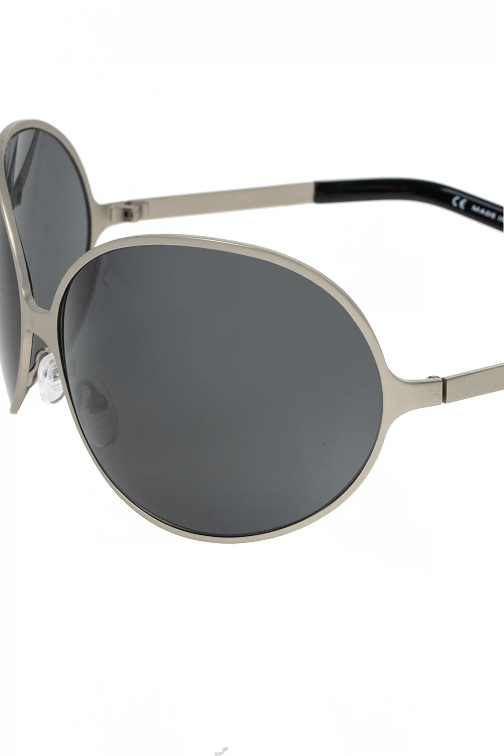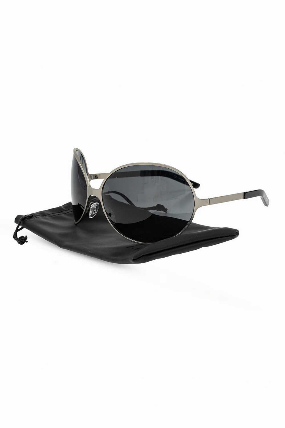 Okulary przeciwsłoneczne w kolorze srebrnym, model ‘Beetle’ Eytys. Czarne soczewki. Ręcznie wykonane oprawki ozdobione nadrukowanym wzorem z logo w kolorze srebrnym.