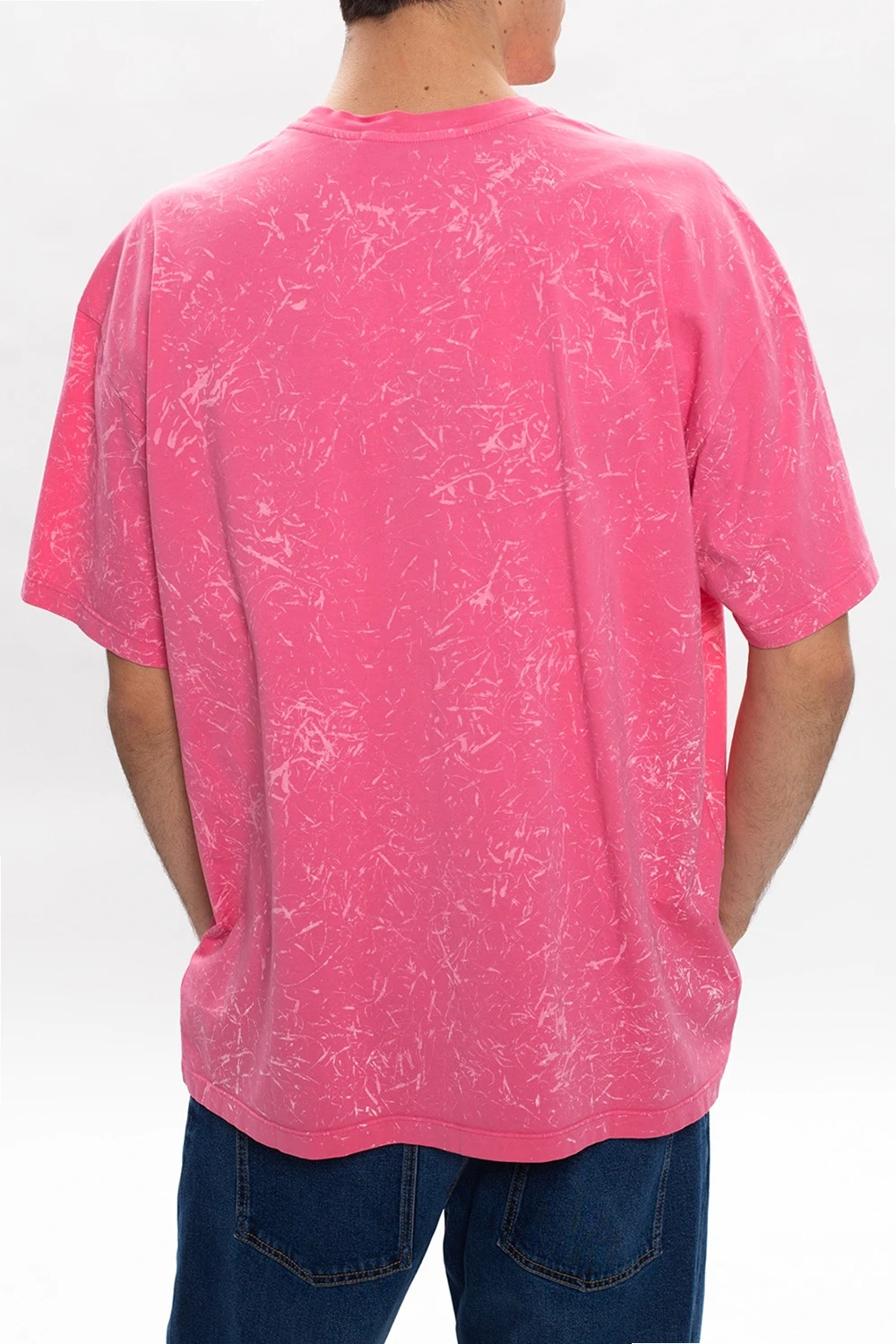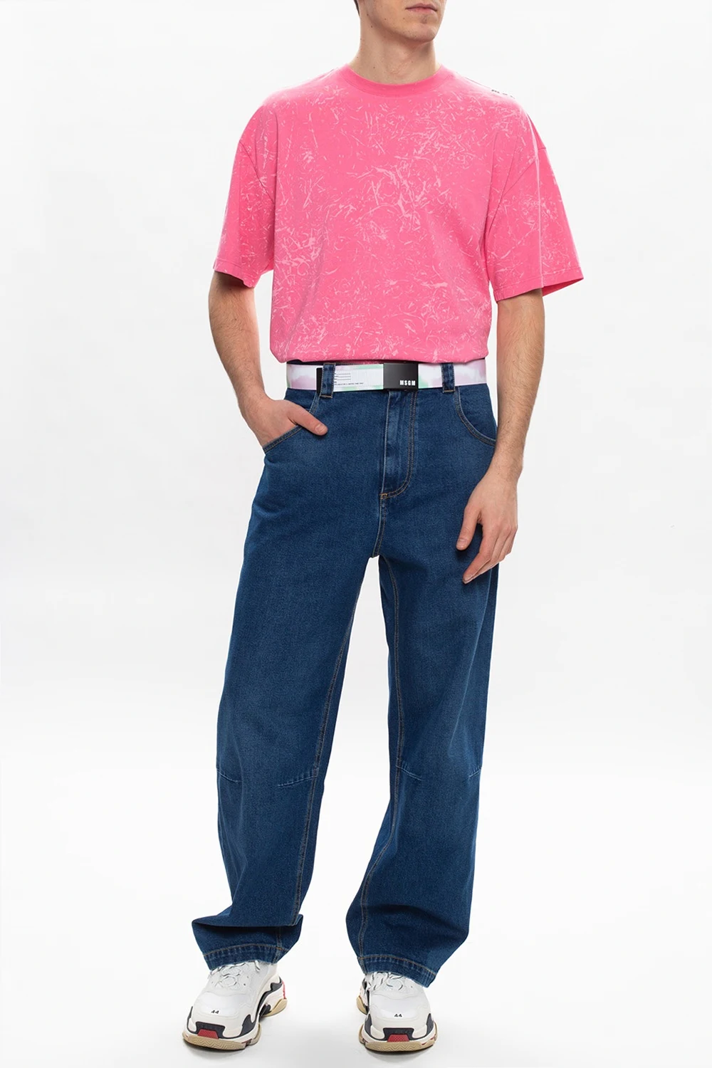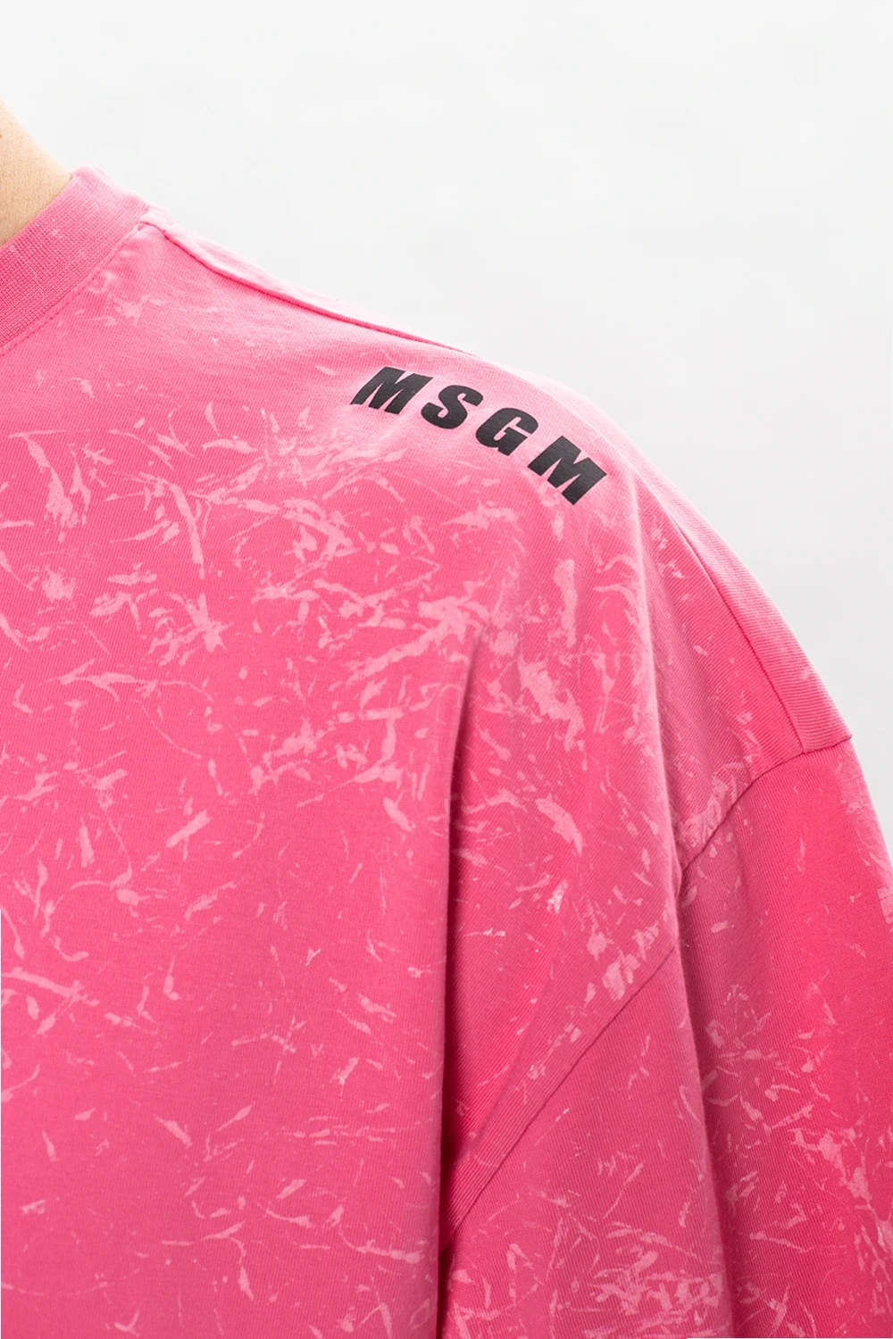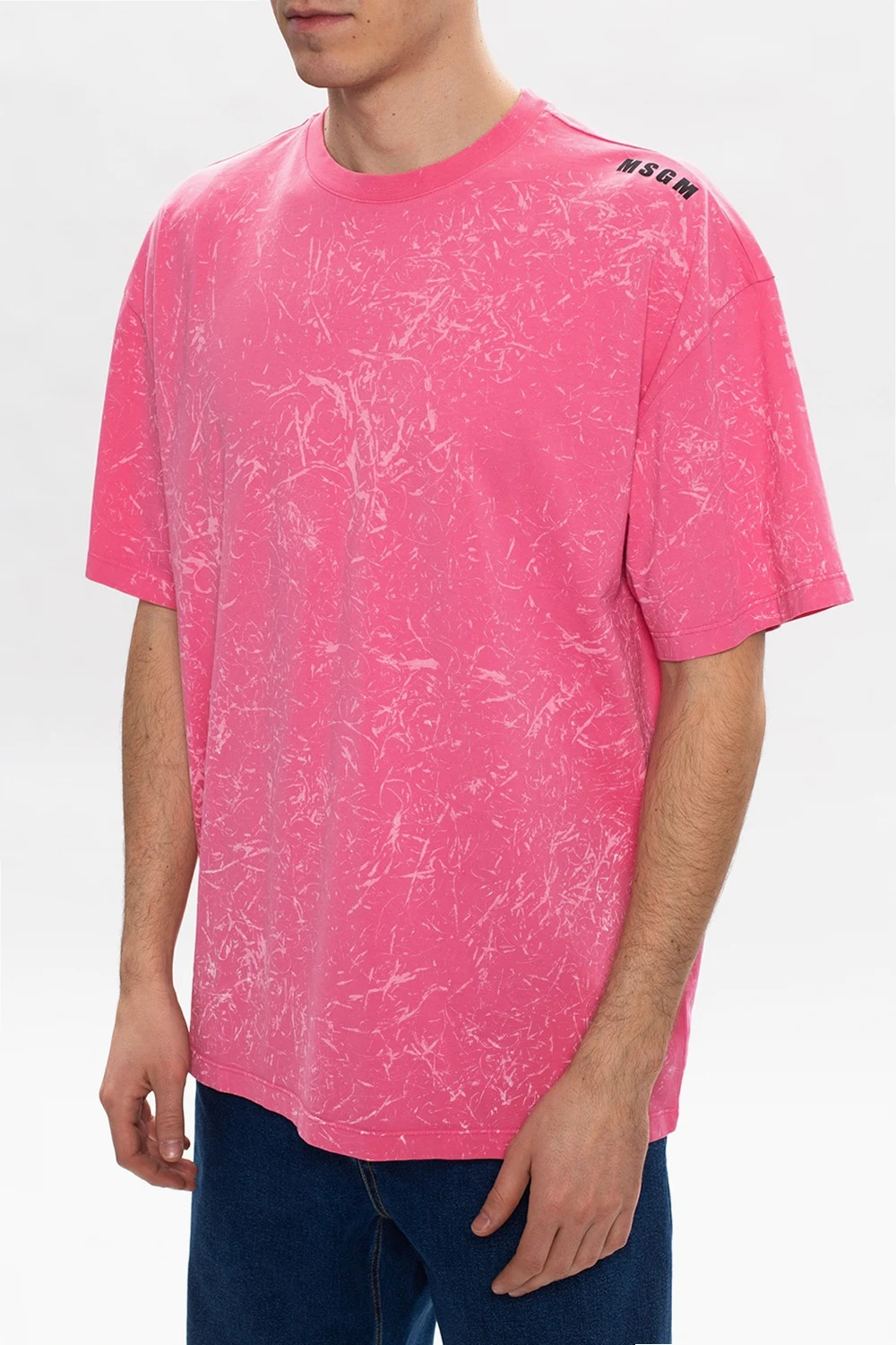 Różowy, bawełniany t-shirt MSGM. Ozdobiony nadrukowanym wzorem. Okrągły dekolt.