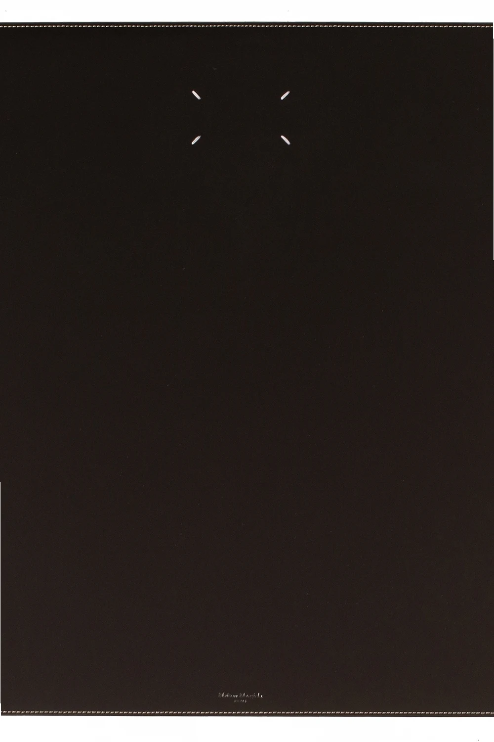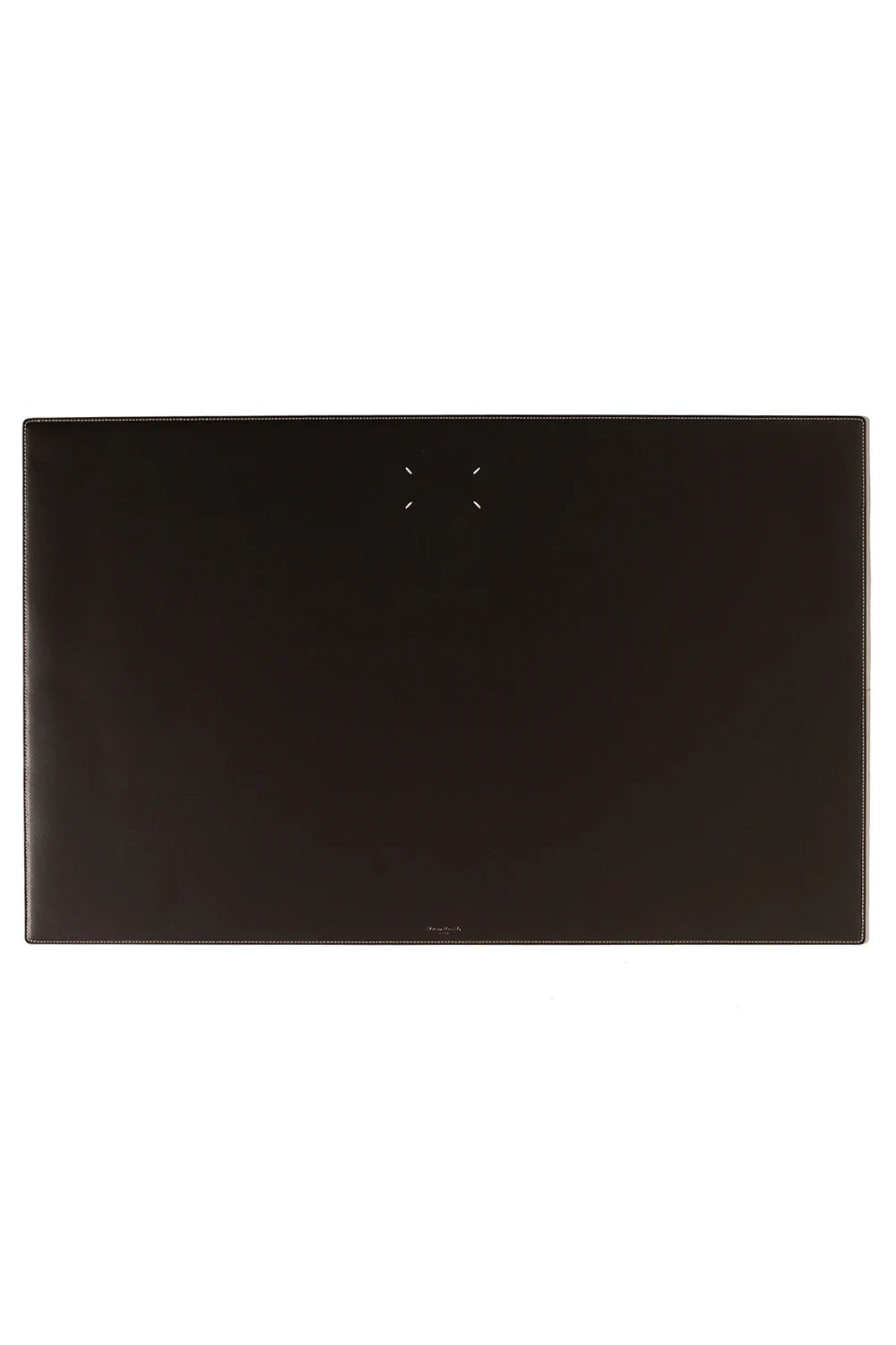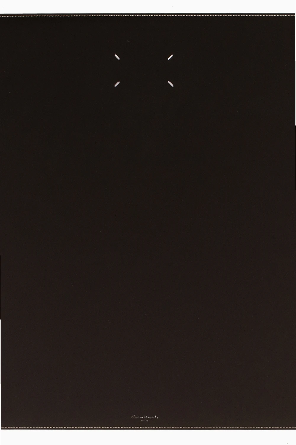 Czarna, skórzana podkładka na biurko Maison Margiela. Ozdobiona przeszyciami.