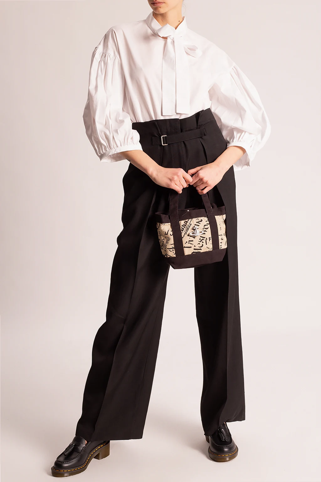 – Czarny marszczony top z bufkami i kołnierzykiem w groszki, część zestawu