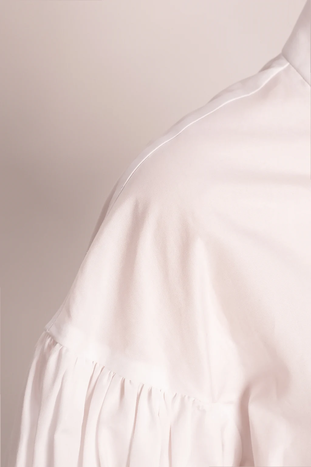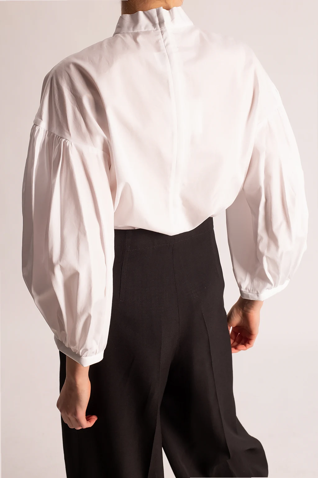 Biały top CDG by Comme des Garçons. Wykonany z bawełny. Z tyłu zapinany na zamek. Wiązanie przy dekolcie. Bufiaste rękawy o długości trzy czwarte.