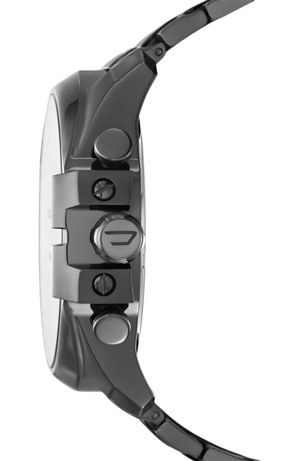 Tarcza przyciąga uwagę minimalistycznym wzornictwem, podkreślonym przez wyraziste indeksy liniowe i solidne wskazówki. Trzy sub-tarcze chronografu oraz okienko datownika świadczą o precyzyjnej funkcjonalności zegarka, a oszczędność detali nadaje całości wyjątkowej klasy. Logo Diesel umiejętnie wyeksponowano na tarczy oraz na zapięciu bransolety.