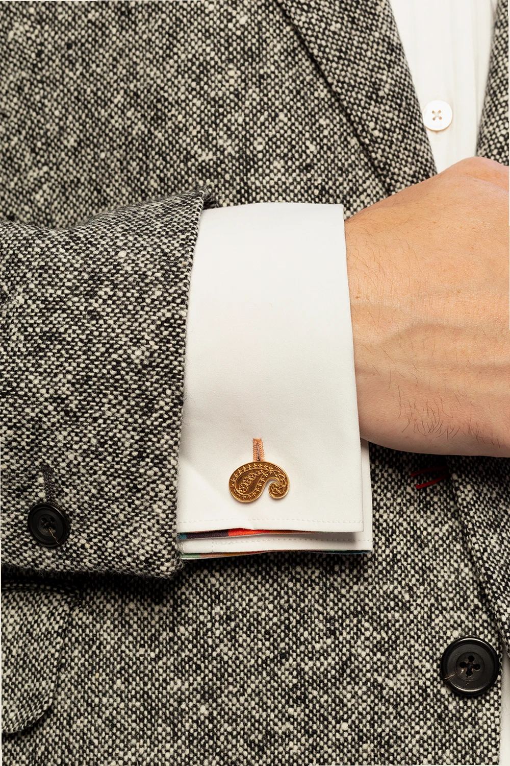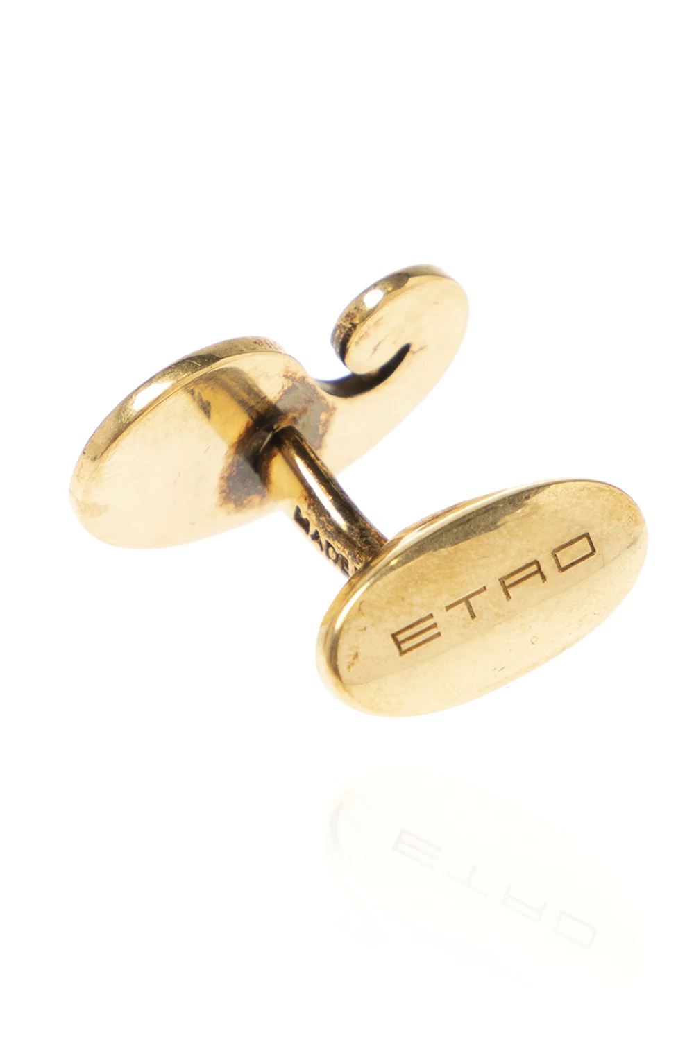 Mosiężne spinki do mankietów w kolorze postarzanego złota Etro. Ozdobione wzorem z motywem kwiatowym.