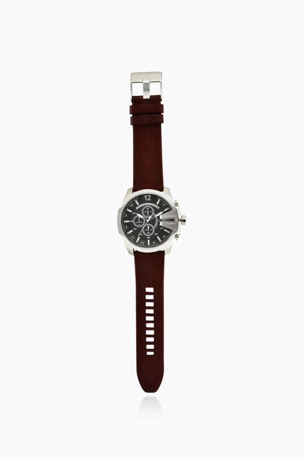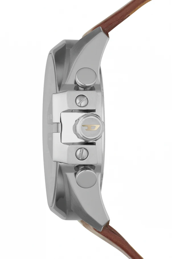 Dominująca srebrno-czarna tarcza z wyrazistymi indeksami, znaczącą cyfrą „12” oraz trzema funkcjonalnymi chronografami podkreśla unikatowość czasomierza. Obecność logo „DIESEL”, precyzyjny datownik oraz charakterystyczne, masywne przyciski wydobywają pełnię wyrazistego charakteru projektu.