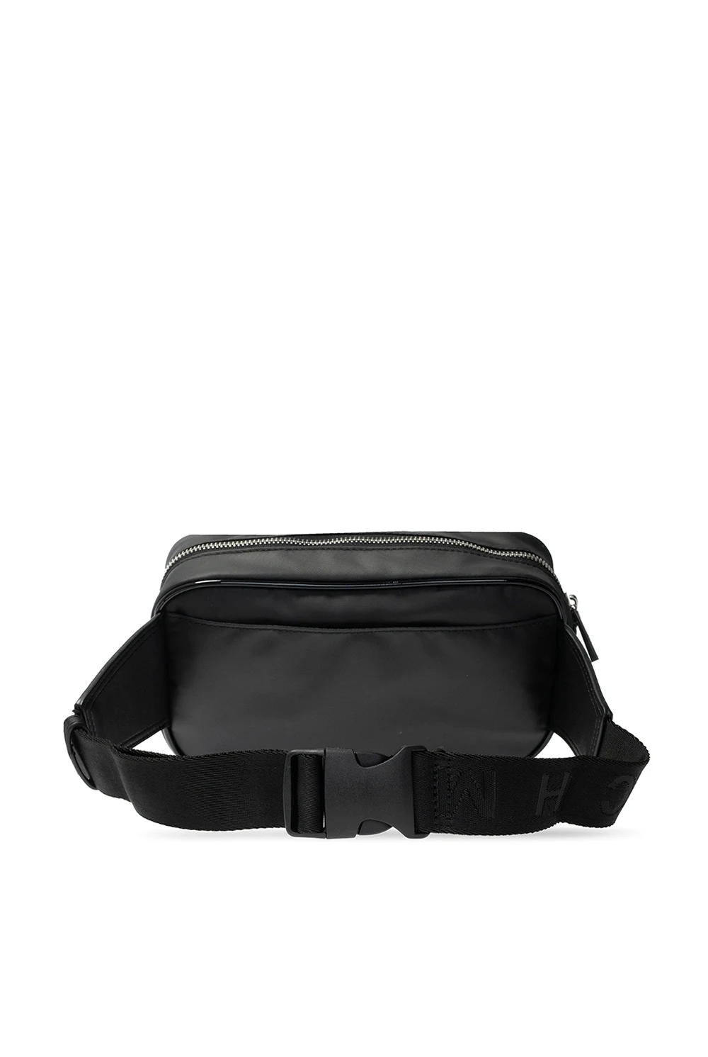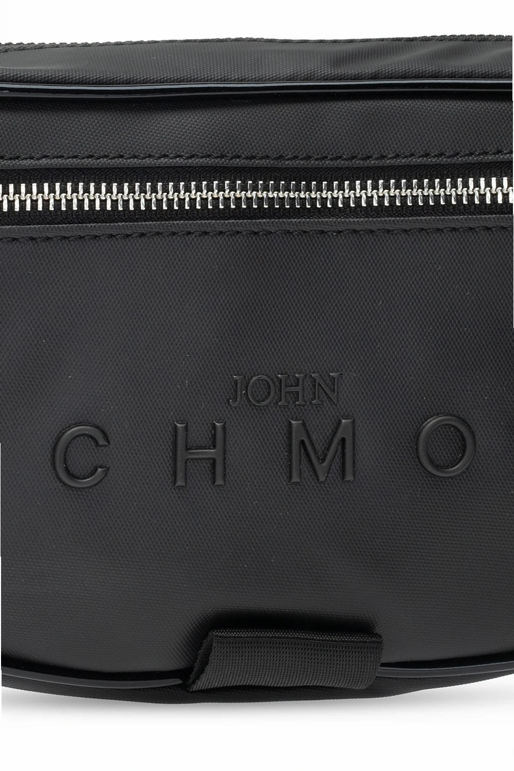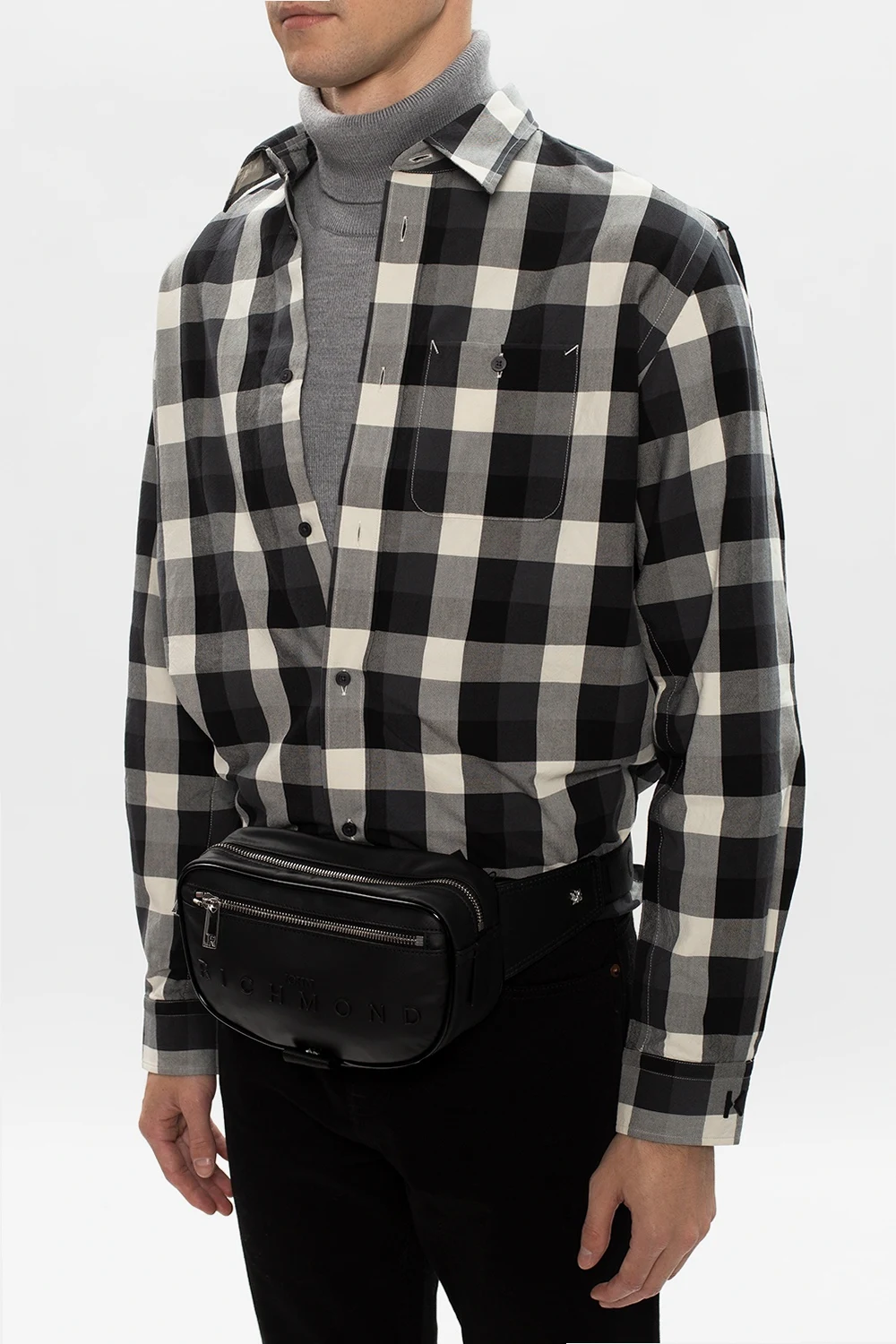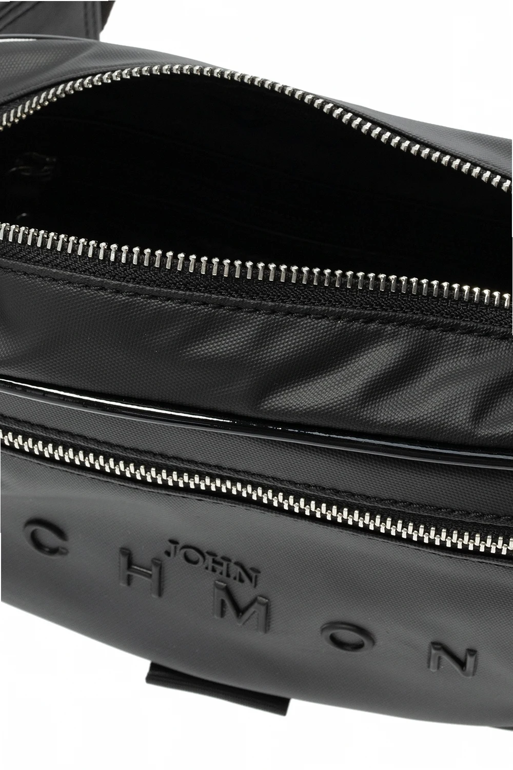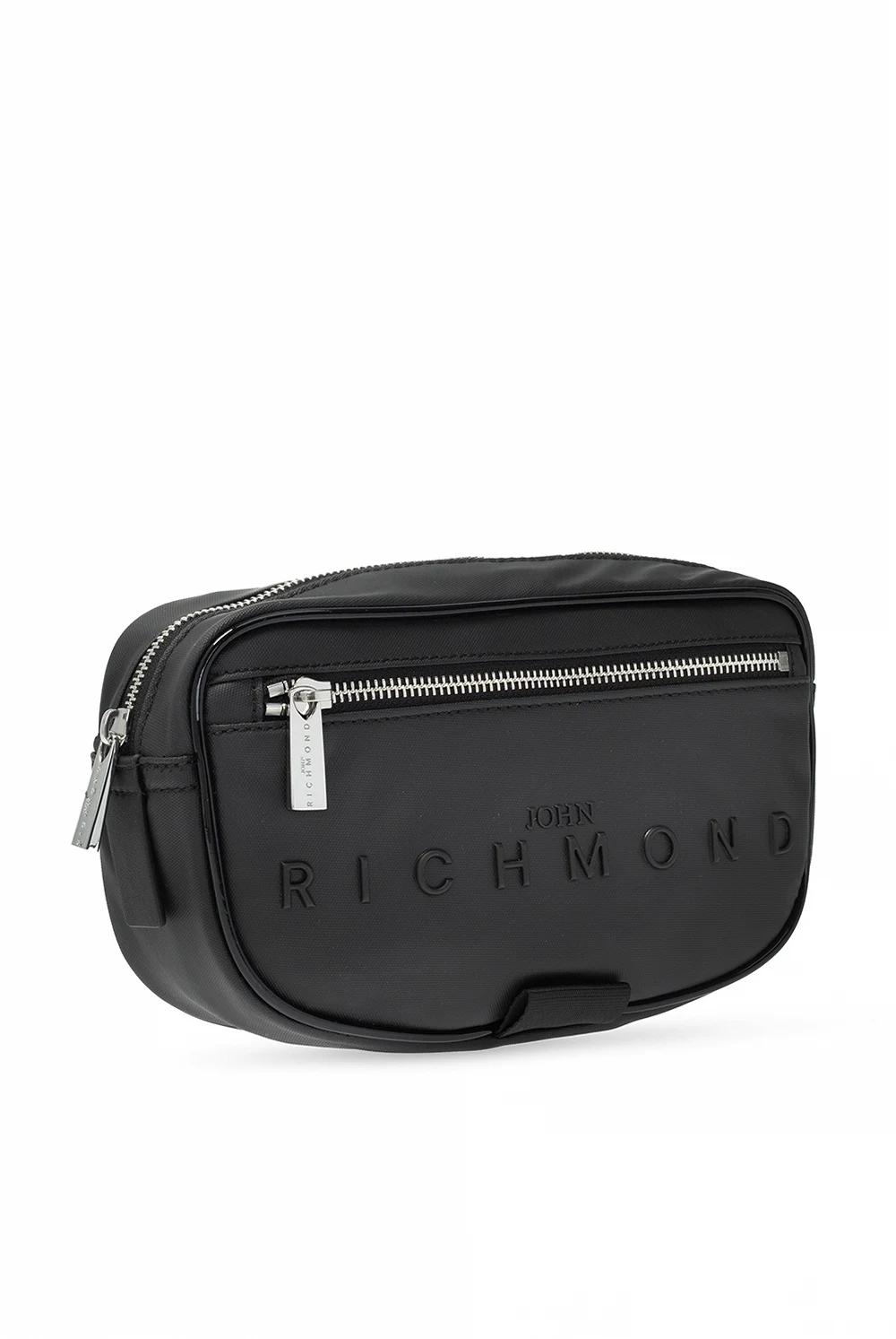 Czarna torba na pas John Richmond. Zamykana na zamek. Ozdobiona wypukłym logo. Z przodu kieszeń zamykana na zamek. Z tyłu kieszeń zamykana na magnetyczny zatrzask. Regulowany pasek biodrowy. Wewnątrz komora z dwiema kieszeniami: wsuwaną oraz zamykaną na zamek.
