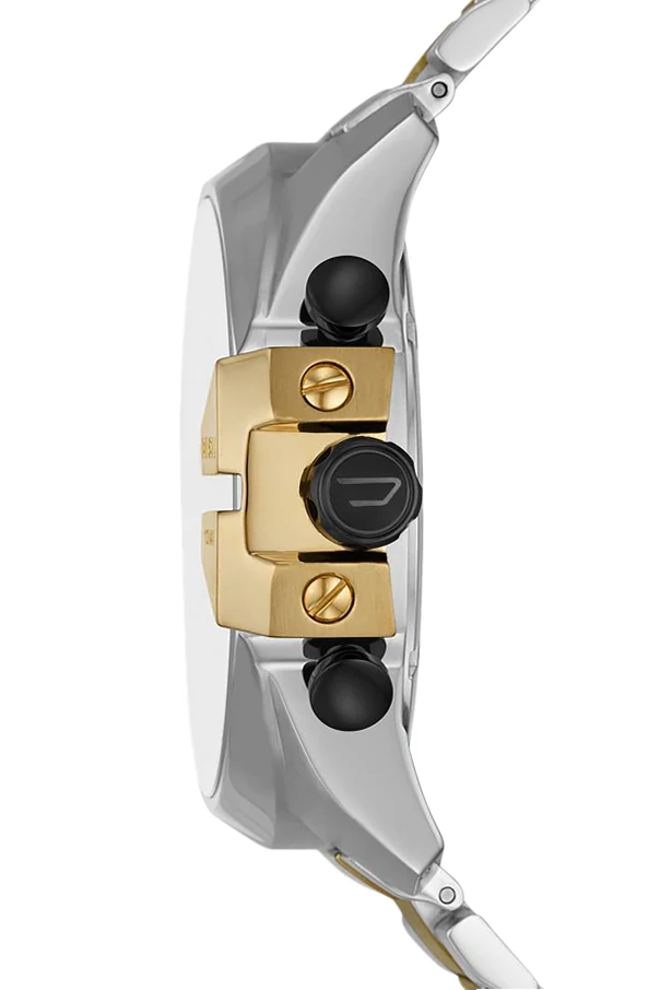 Zegarek wyróżnia obecność trzech subtarcz kronografu , wskaźnika daty oraz charakterystycznej, złotej osłony z logotypem marki DIESEL, nadającej całości niepowtarzalnego charakteru. Bransoleta zachwyca luksusową formą, zapewniając komfort użytkowania na każdym kroku.