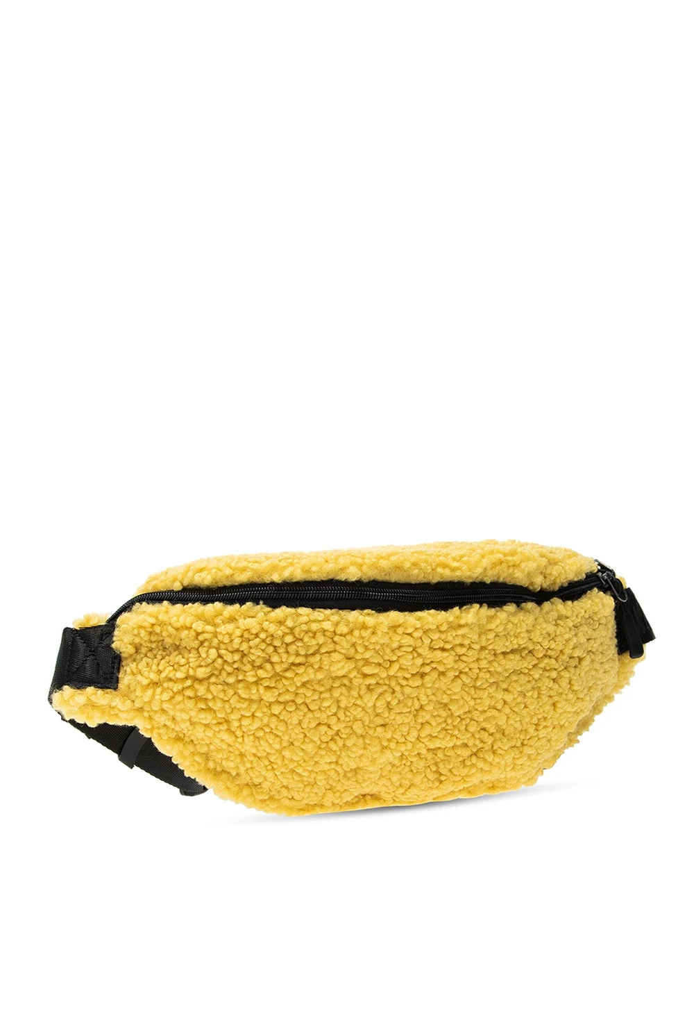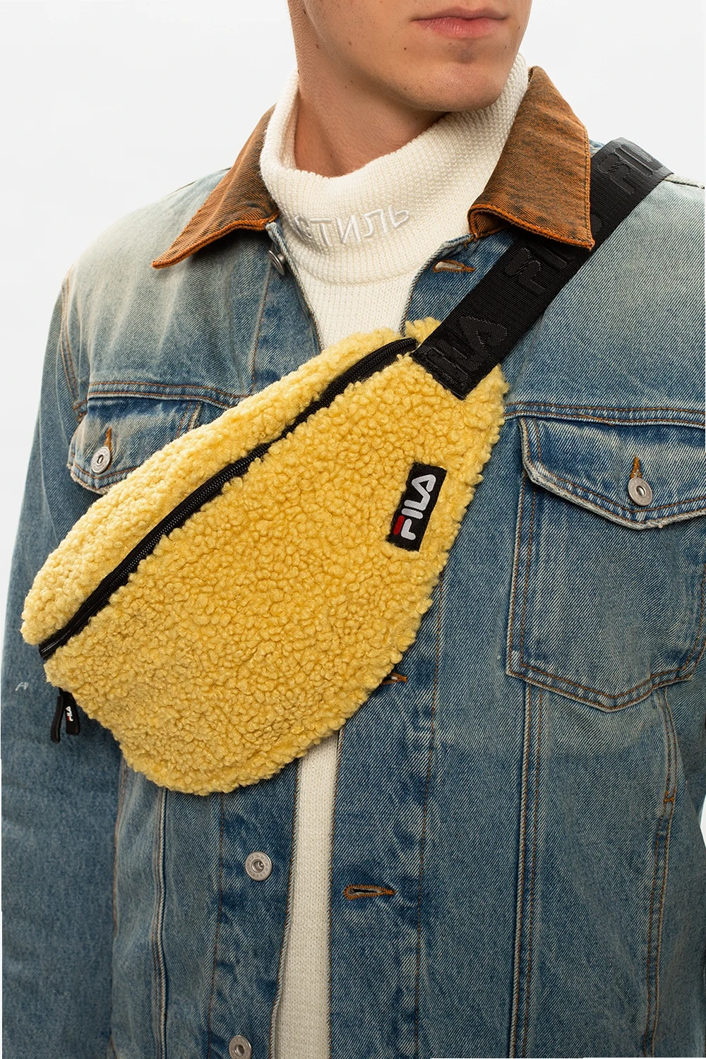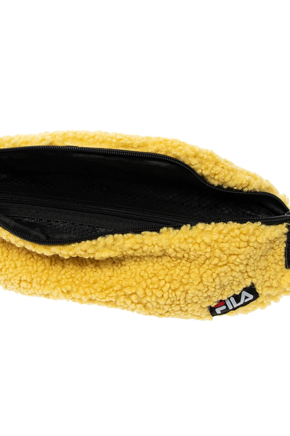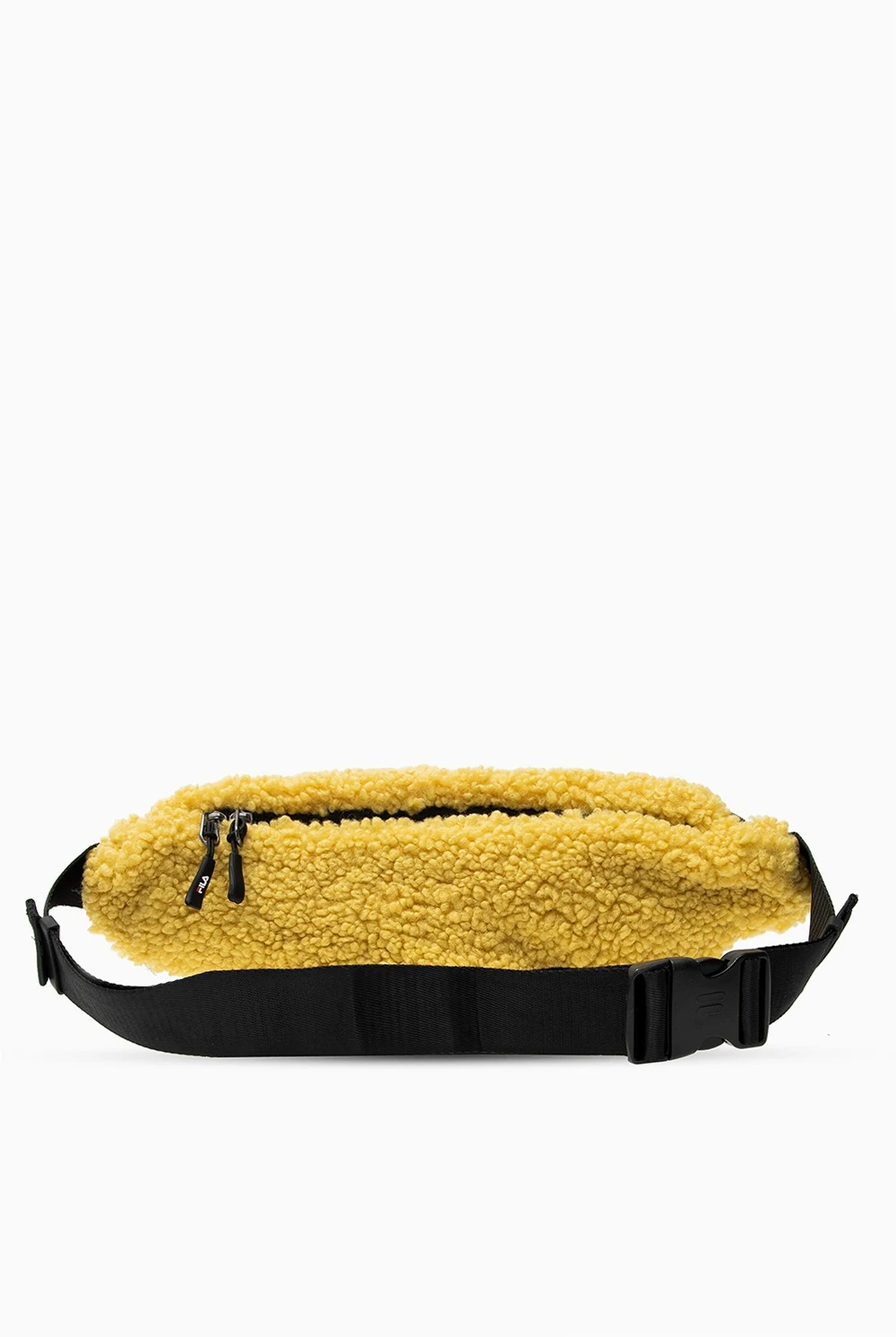 Żółta torba na pas Fila. Wykonana z materiału o specjalnej fakturze imitującej futro. Zapinana na dwubiegunowy zamek. Naszywka z logo w kolorze czarnym. Z tyłu kieszeń zapinana na dwubiegunowy zamek. Pasek z klamrą z możliwością regulacji. Wewnątrz komora oraz kieszeń wykonana z siatki zapinana na zamek.