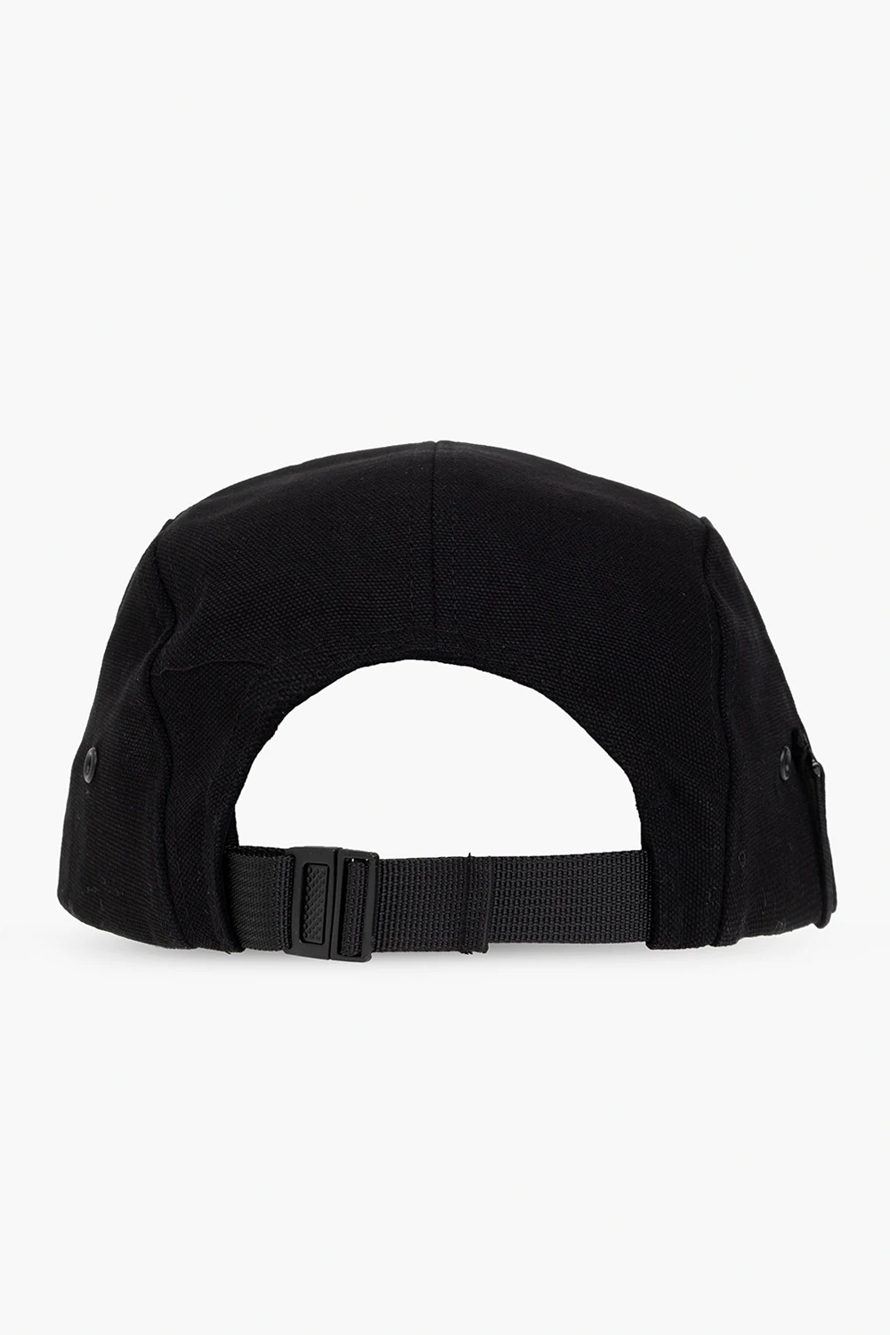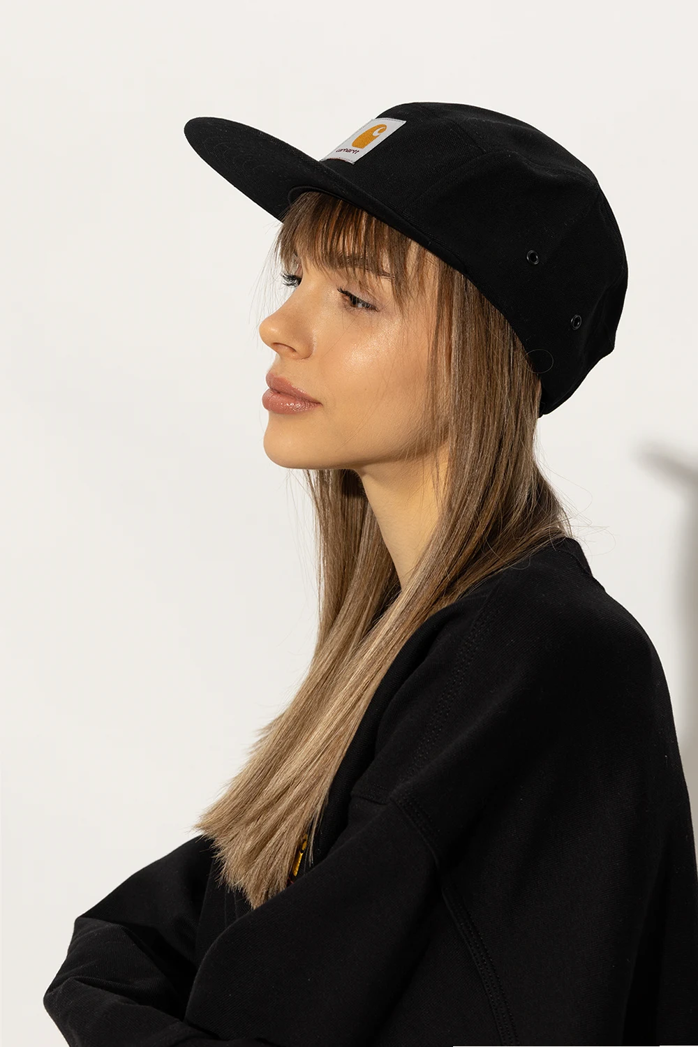 Czarna czapka z daszkiem, model ‘Backley’ Carhartt WIP. Wykonana z bawełny. Z przodu naszywka z logo. Z tyłu pasek z możliwością regulacji.