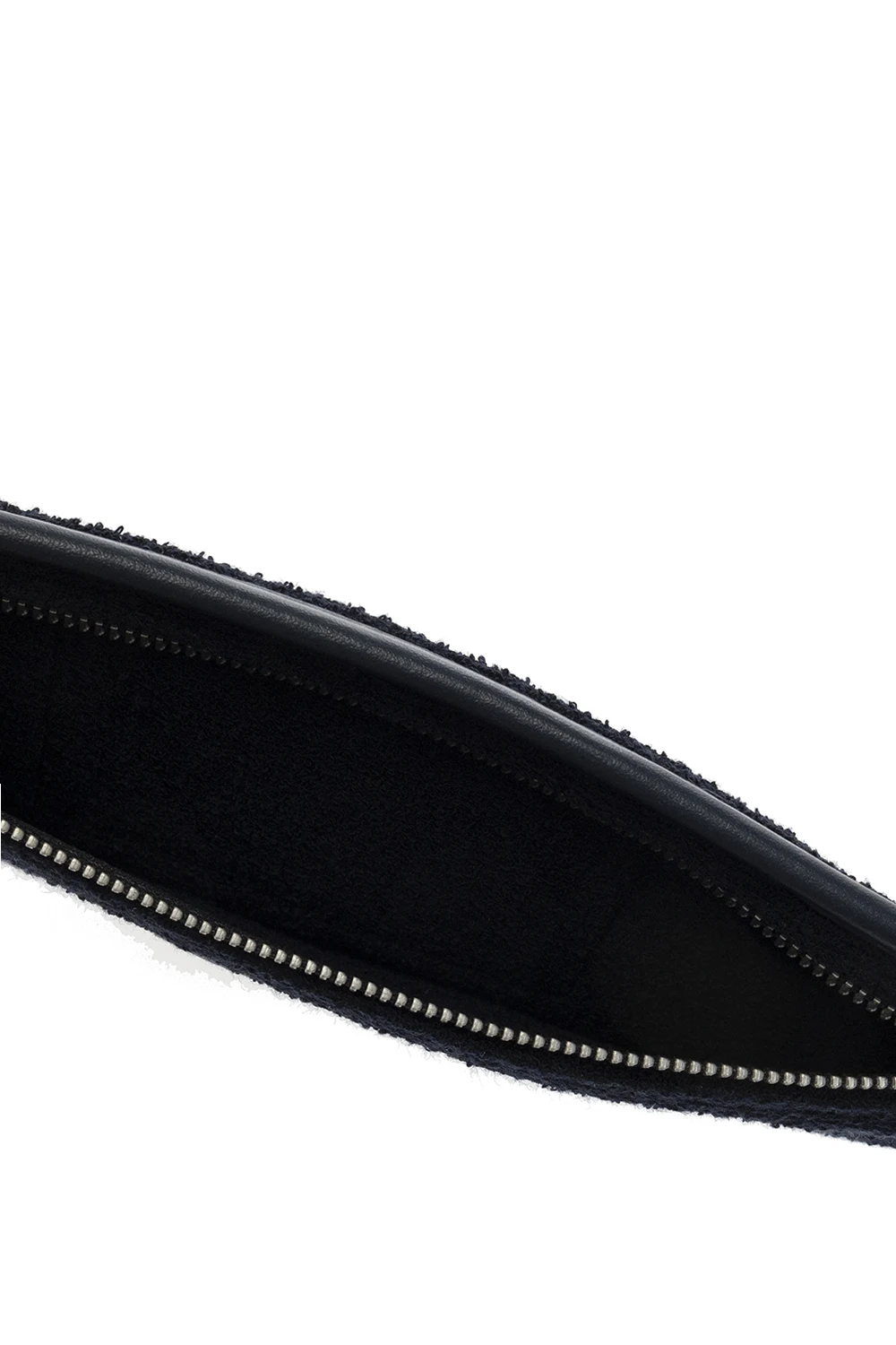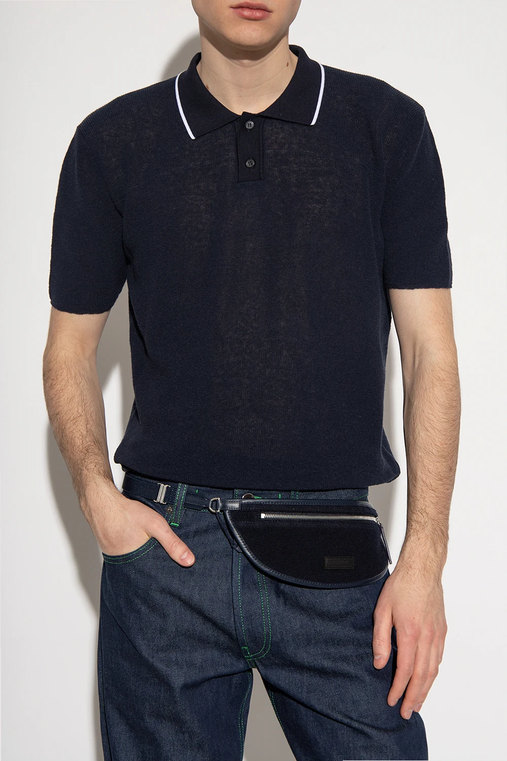 Granatowa torba na pas, model ‘La Banane Yelo’ Jacquemus. Wykonana z materiału o specjalnej fakturze. Zamykana na zamek. Ozdobiona gumową naszywką z logo w kolorze czarnym. Z tyłu miejsce na kartę. Pas na pas z możliwością regulacji długości. Wewnątrz komora. Metalowe elementy w kolorze srebrnym.
